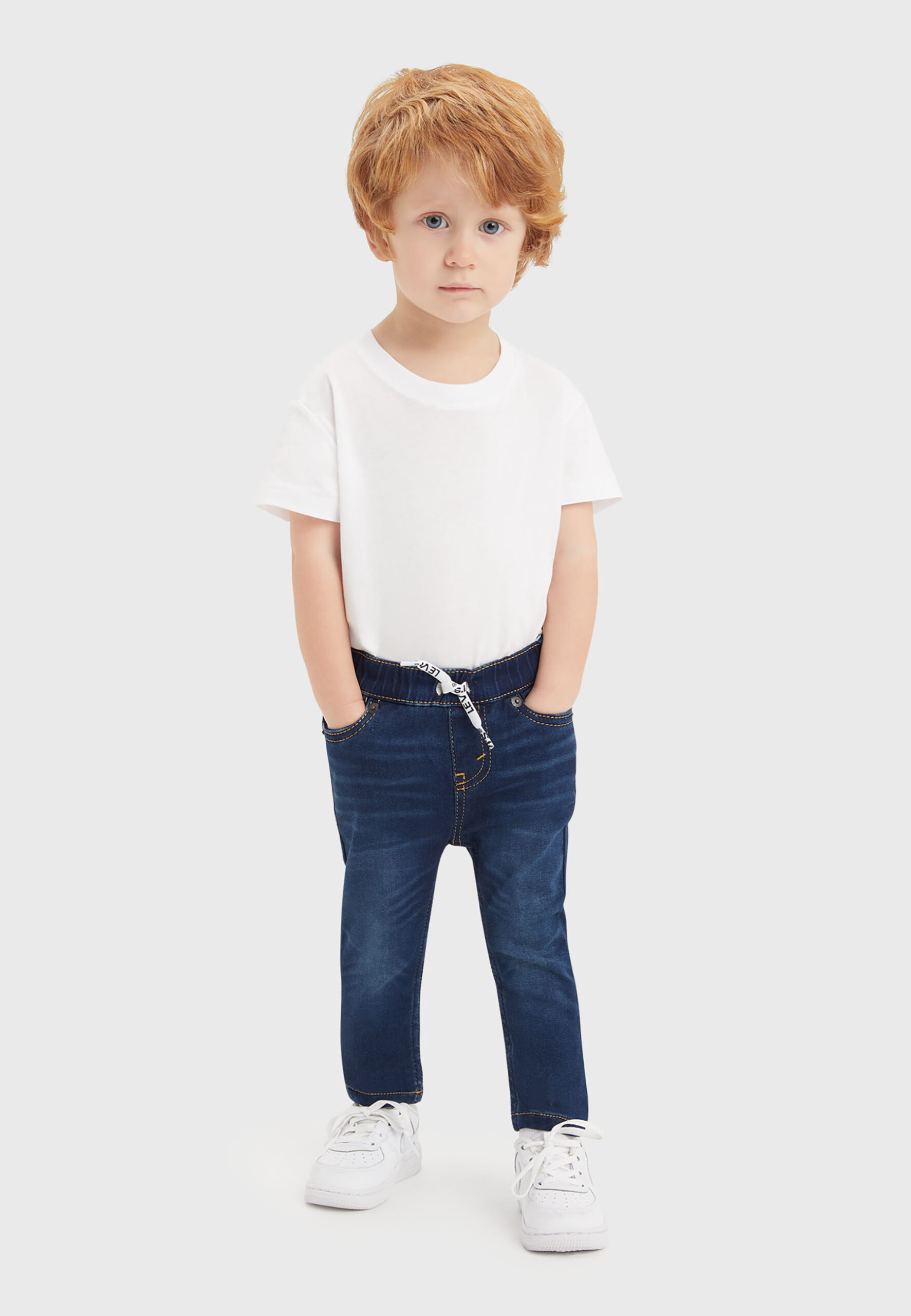 The skinny tapered fit delivers a modern look while allowing freedom of movement for crawling, cruising and early steps. Finished in a versatile dark denim wash, they pair effortlessly with t-shirts, jumpers or hoodies for casual, everyday outfits.