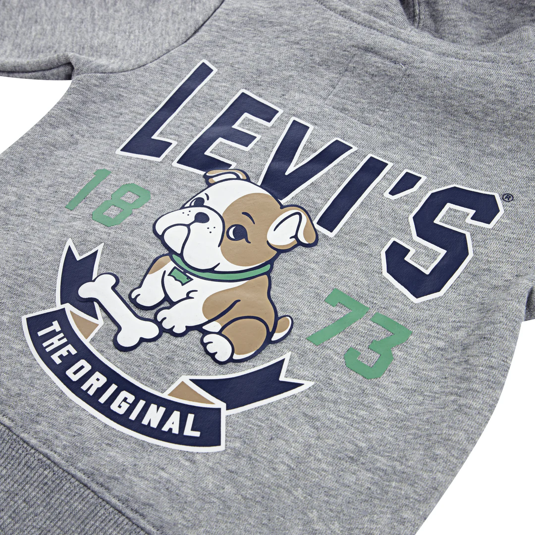 Dress your little one in classic Levi’s style with this adorable three-piece baby boys’ set. The outfit includes a pair of comfy denim jeans, a soft zip-up hoodie, and a matching green bodysuit for a coordinated everyday look. The jeans are made from soft stretch denim for ease of movement, while the hoodie adds warmth and comfort with its cosy lining and iconic Levi’s® branding. The short-sleeve bodysuit completes the outfit with snap fastenings for easy changing — practical, stylish, and perfect for any occasion.