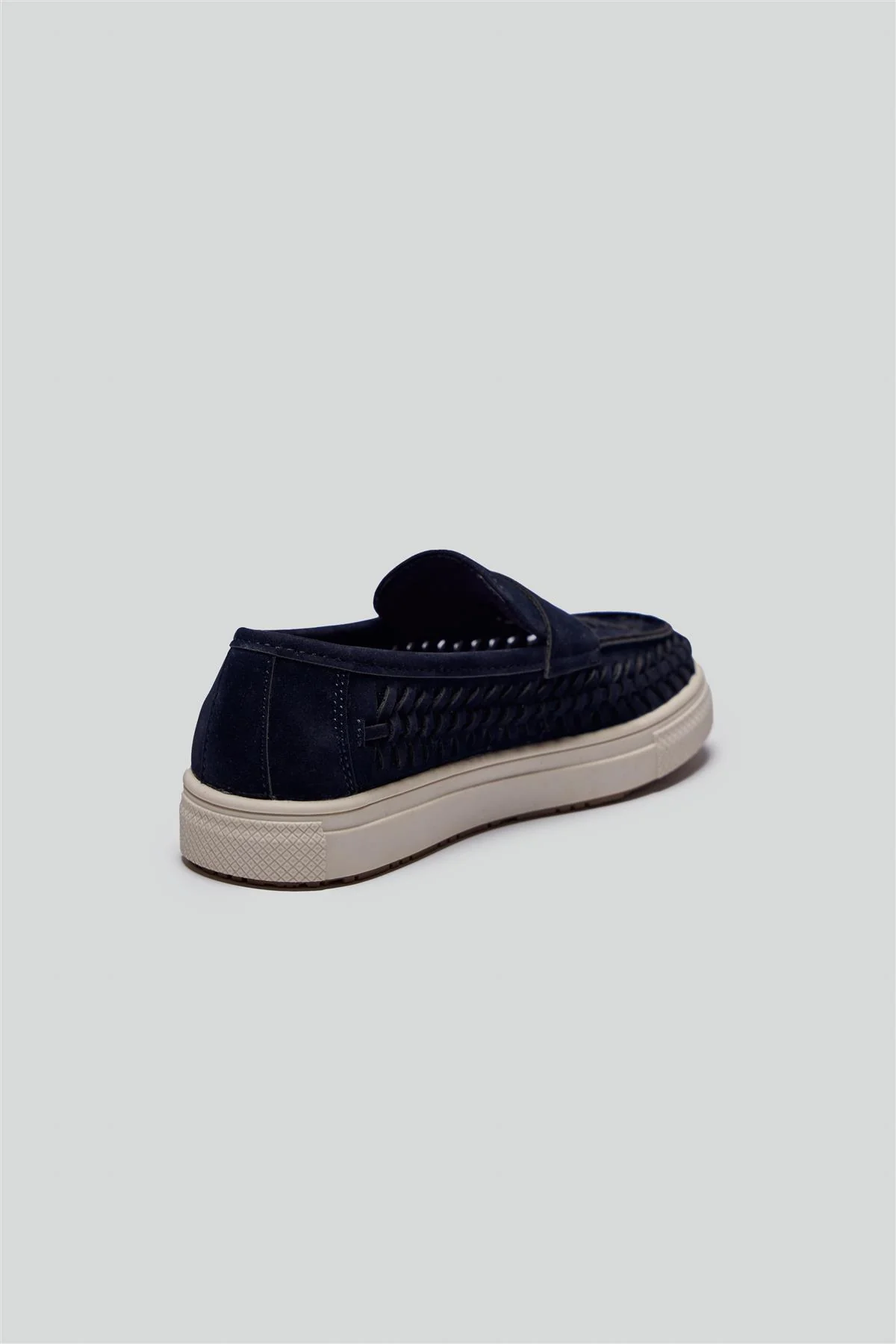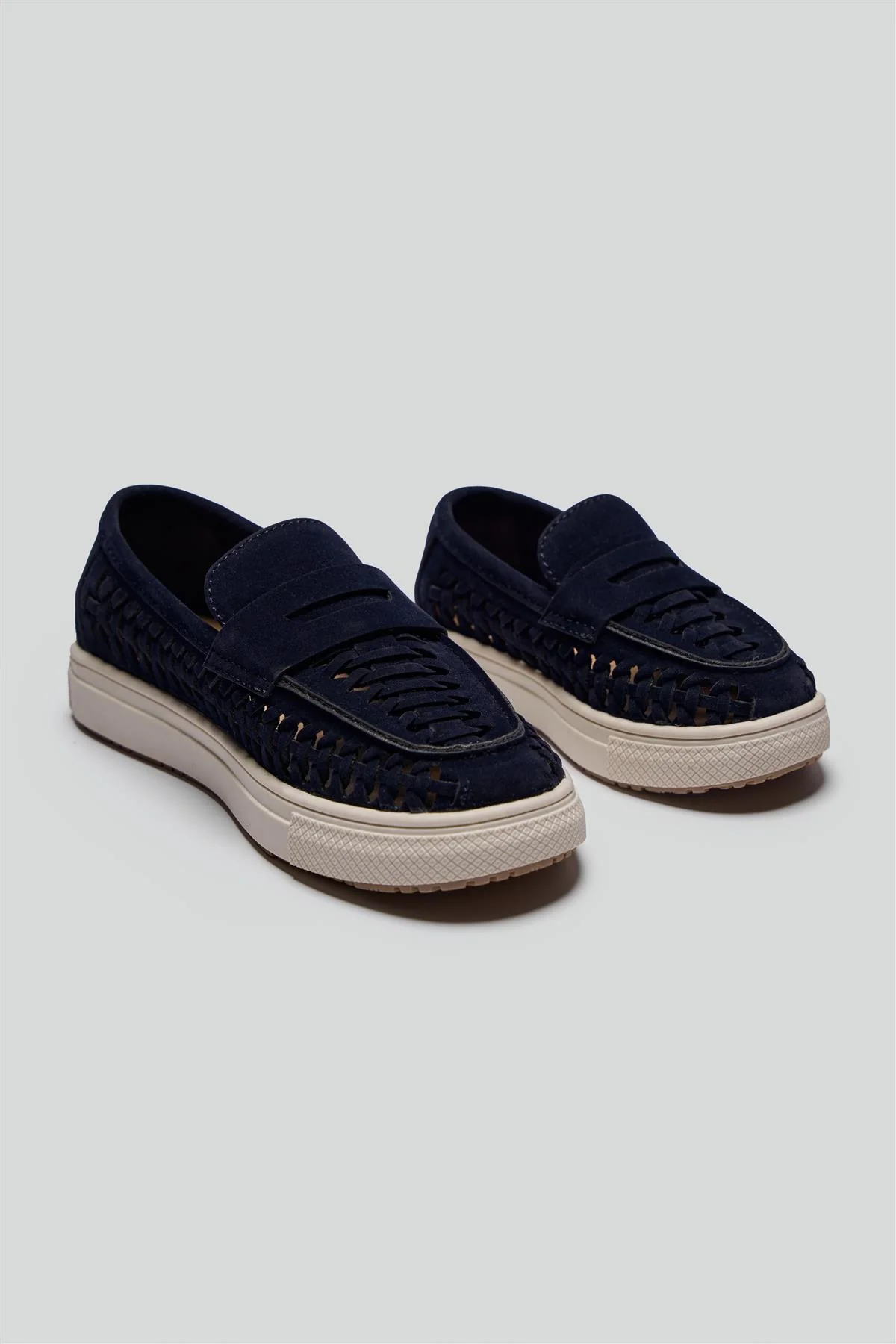 Elevate casual styling with this contemporary woven boys loafer from Cavani. Crafted in rich navy, the intricate woven upper adds texture and breathability while maintaining a refined, polished look.
