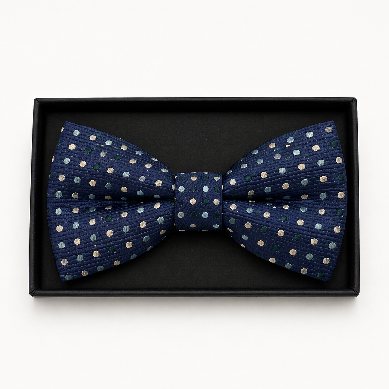 A timeless choice for formal dressing, this boys’ bow tie features a deep navy base with subtle multicolour polka dots for a refined yet playful finish. It strikes the perfect balance between classic and modern, making it suitable for a wide range of occasions.