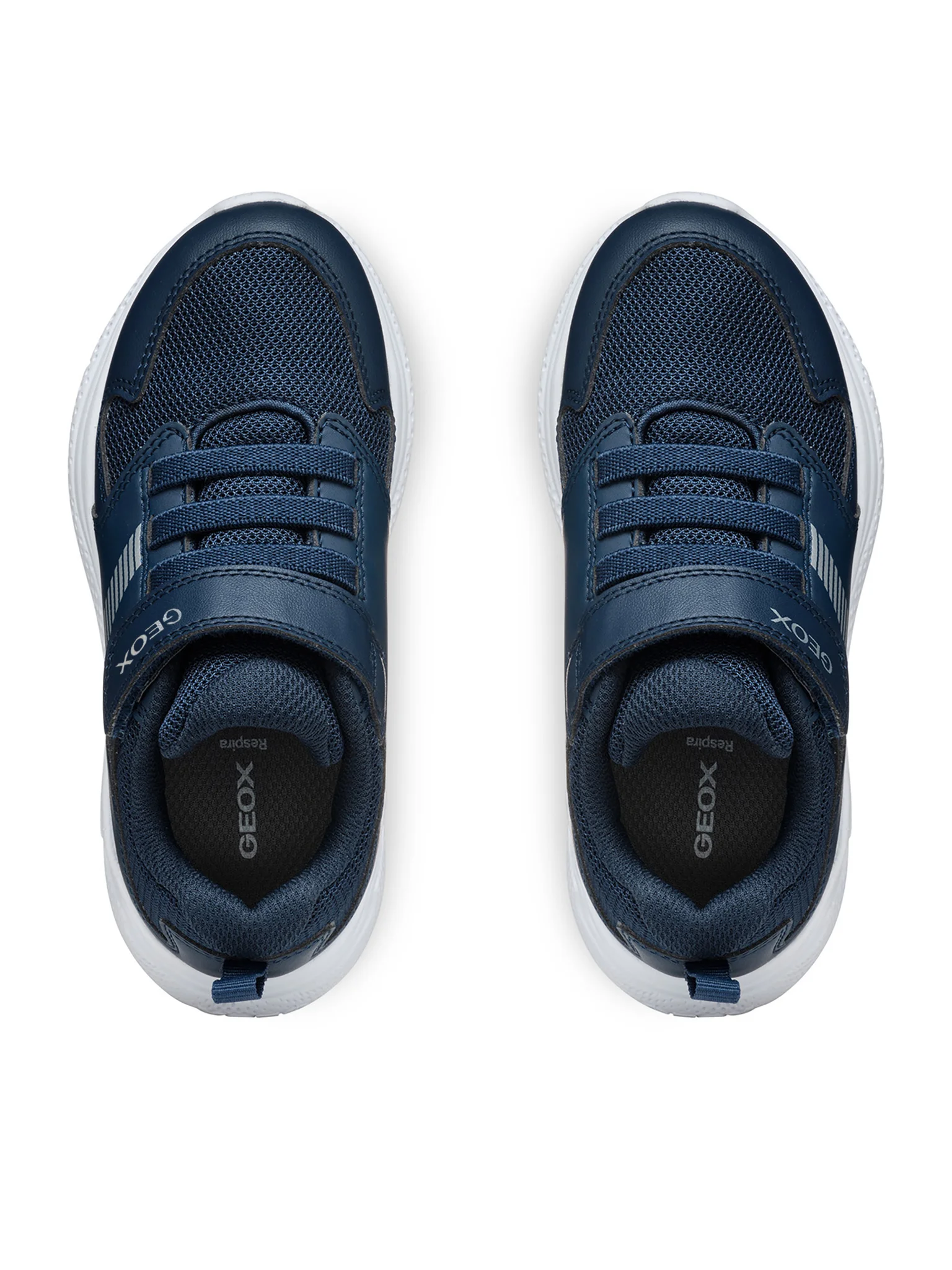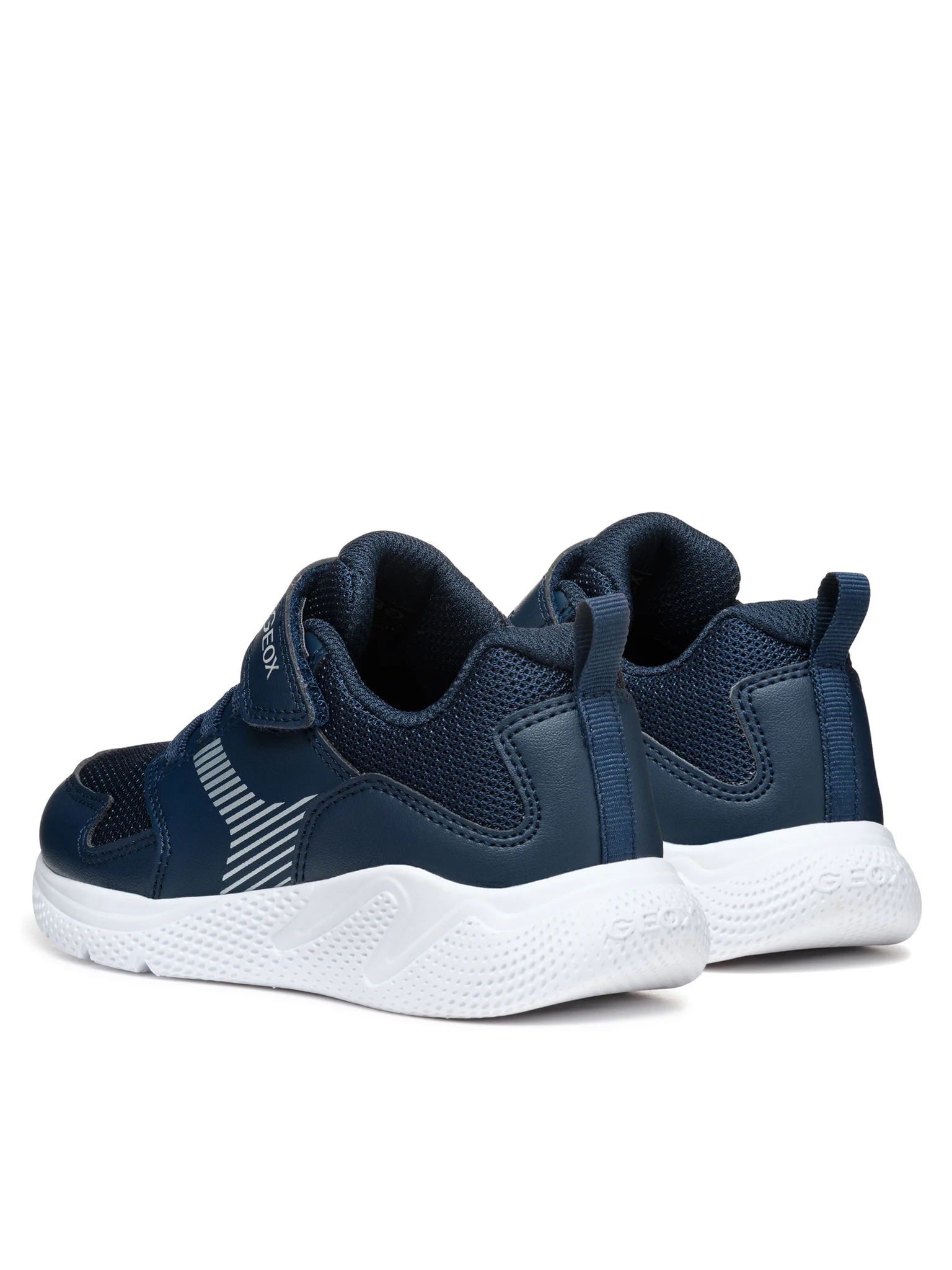 Keep him comfortable and ready for action with this sporty baby boys’ trainer from Geox. Designed in a versatile navy colourway with subtle white detailing, this lightweight shoe delivers a clean, athletic look that pairs easily with everyday outfits. An easy rip-tape strap with elasticated laces ensures a secure fit and makes dressing quick and fuss-free.