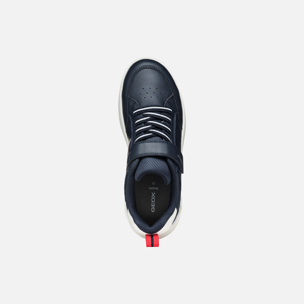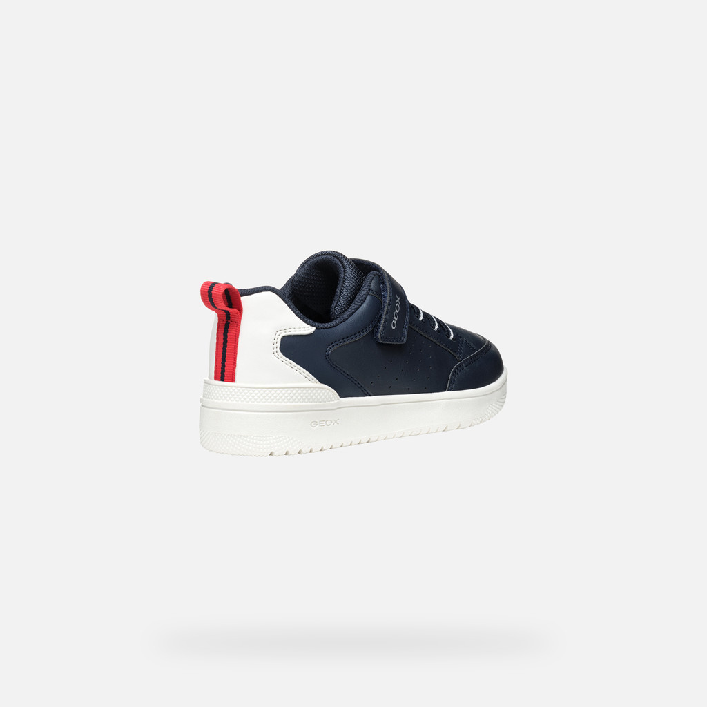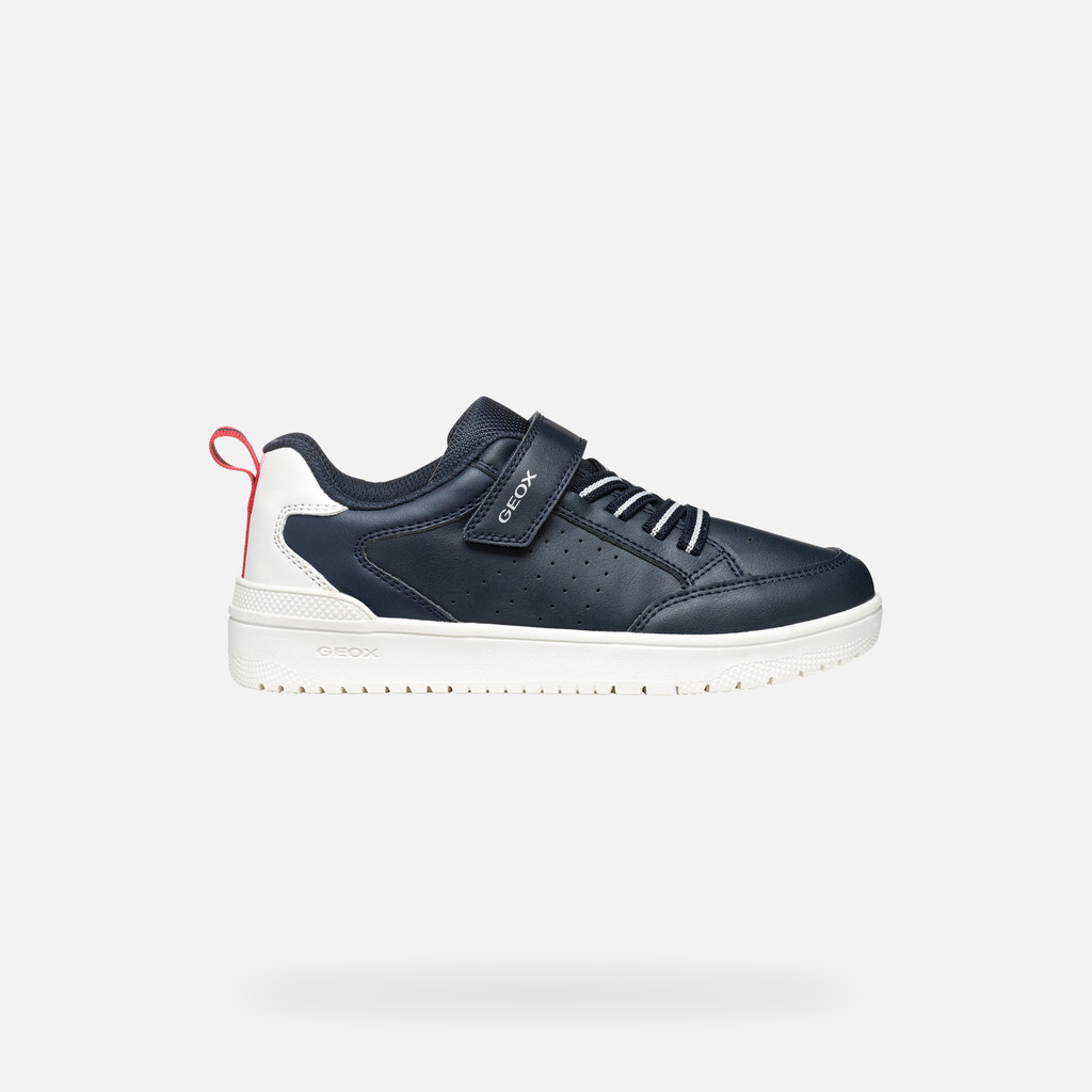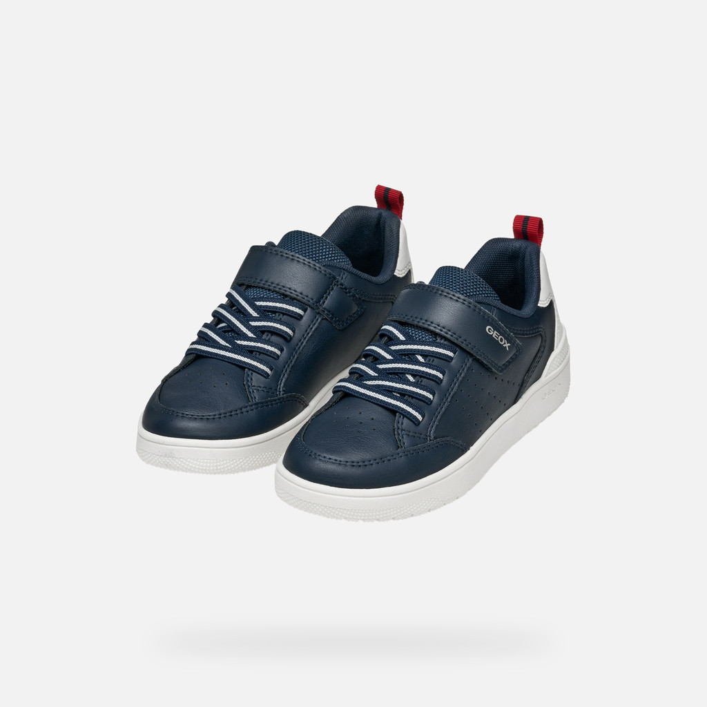 Comfortable breathable low-cut trainer for boys with a trendy basketball aesthetic. This navy-blue version with white detailing will be the ultimate way to complete day-to-day styling and sporty-casual looks. Crafted from fabric and a leather-effect material, Washiba is cushioning and lightweight, which makes it the ideal solution for schooldays and around-town afternoons.