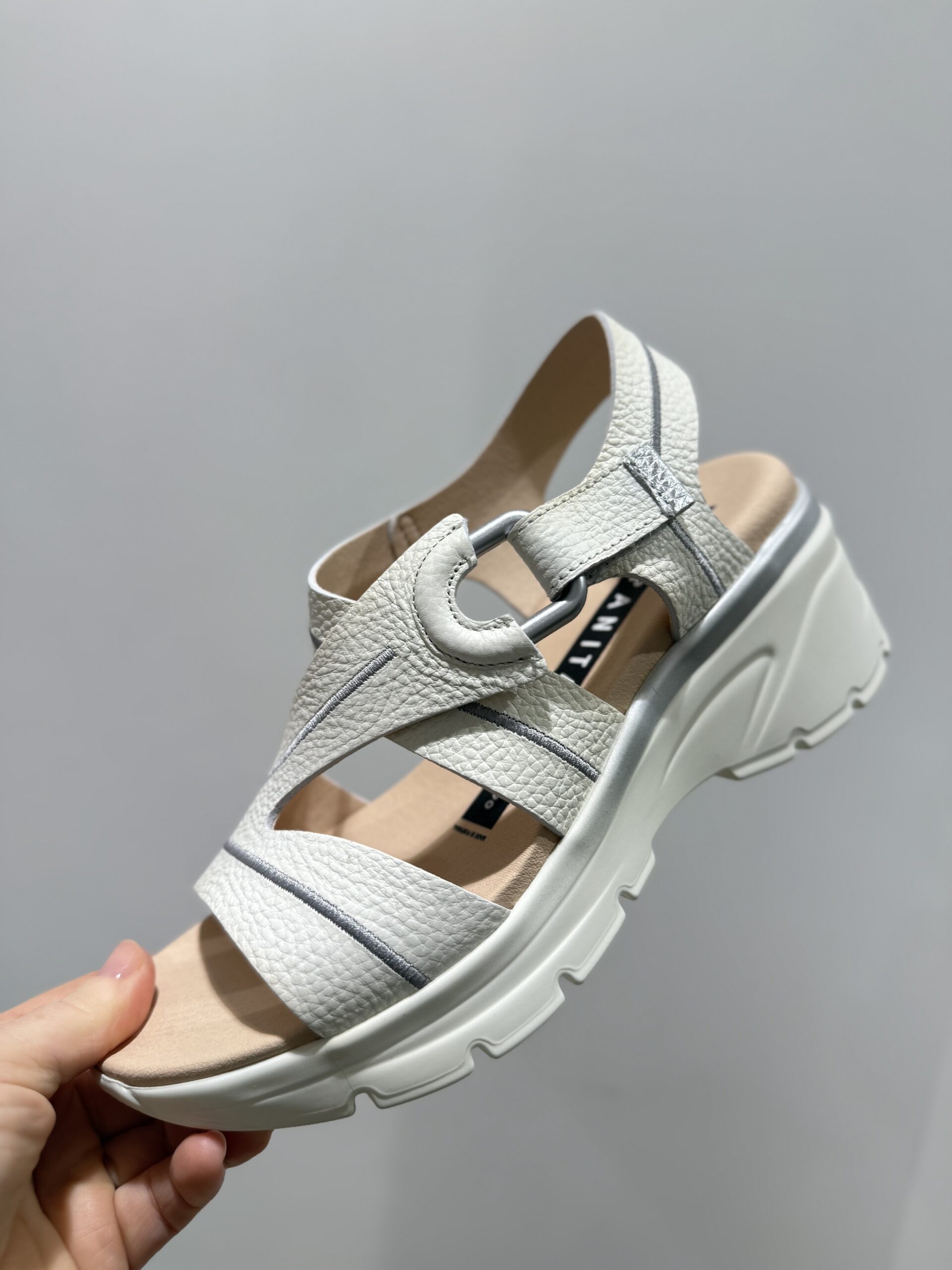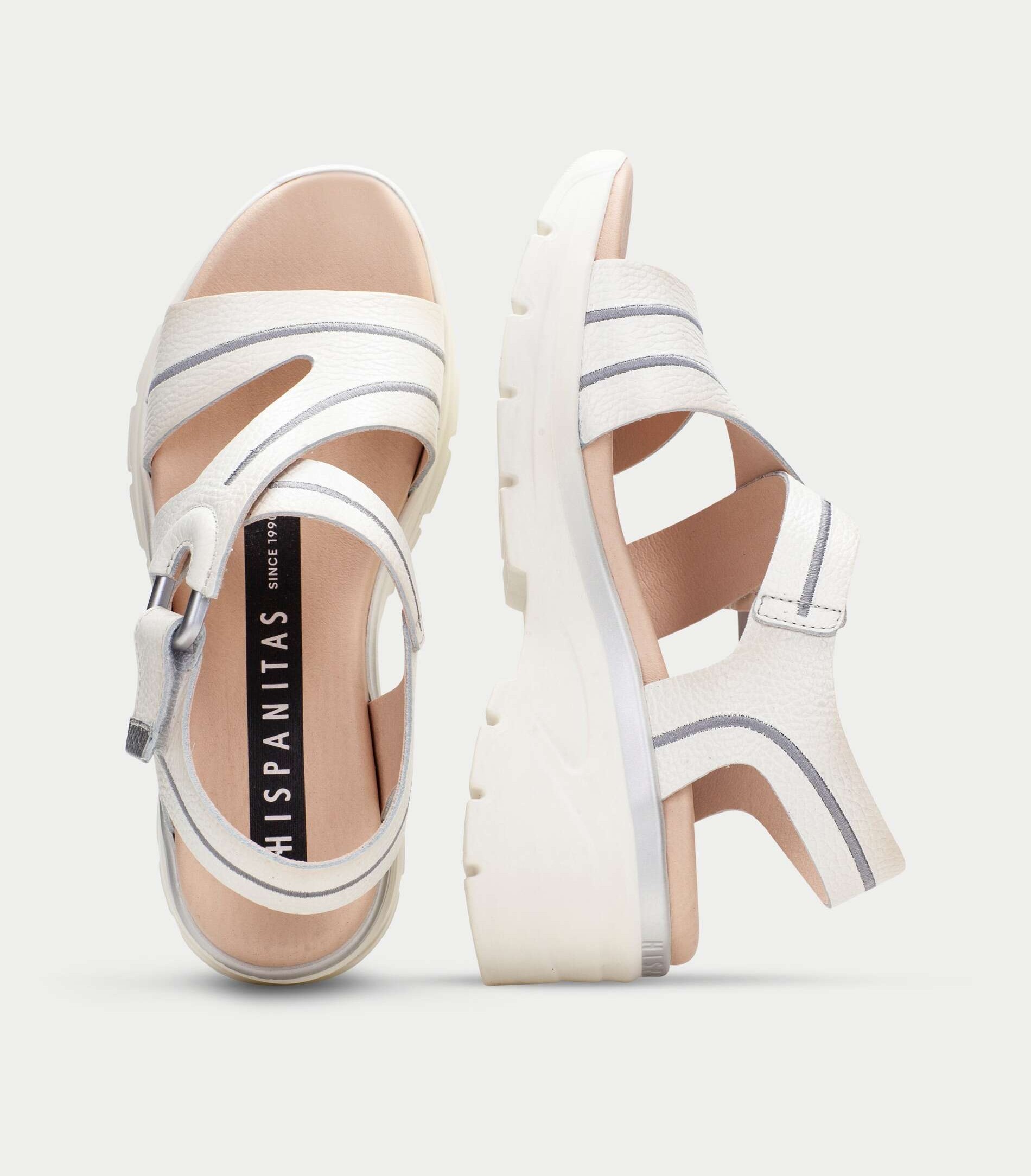Step into effortless summer style with this contemporary sandal from Hispanitas. Crafted from soft, grained off-white leather, it features a modern multi-strap design with subtle contrast stitching for a refined yet sporty finish.