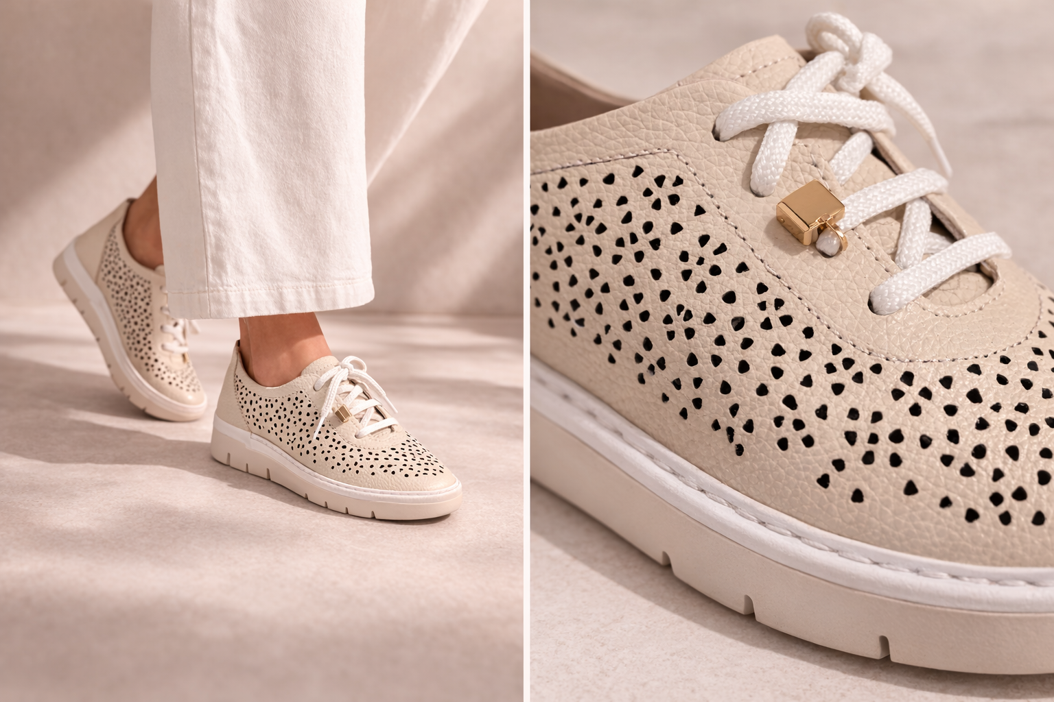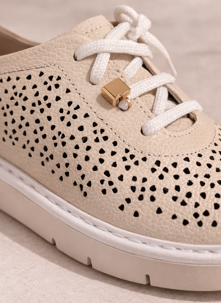 Step into effortless style with these perforated lace-up trainers, designed for both comfort and everyday wear. Featuring a soft textured upper with delicate perforated detailing, they offer a breathable feel while adding a subtle decorative touch.