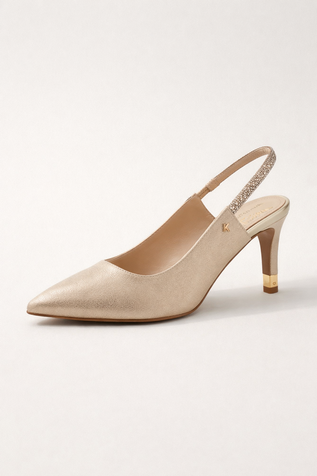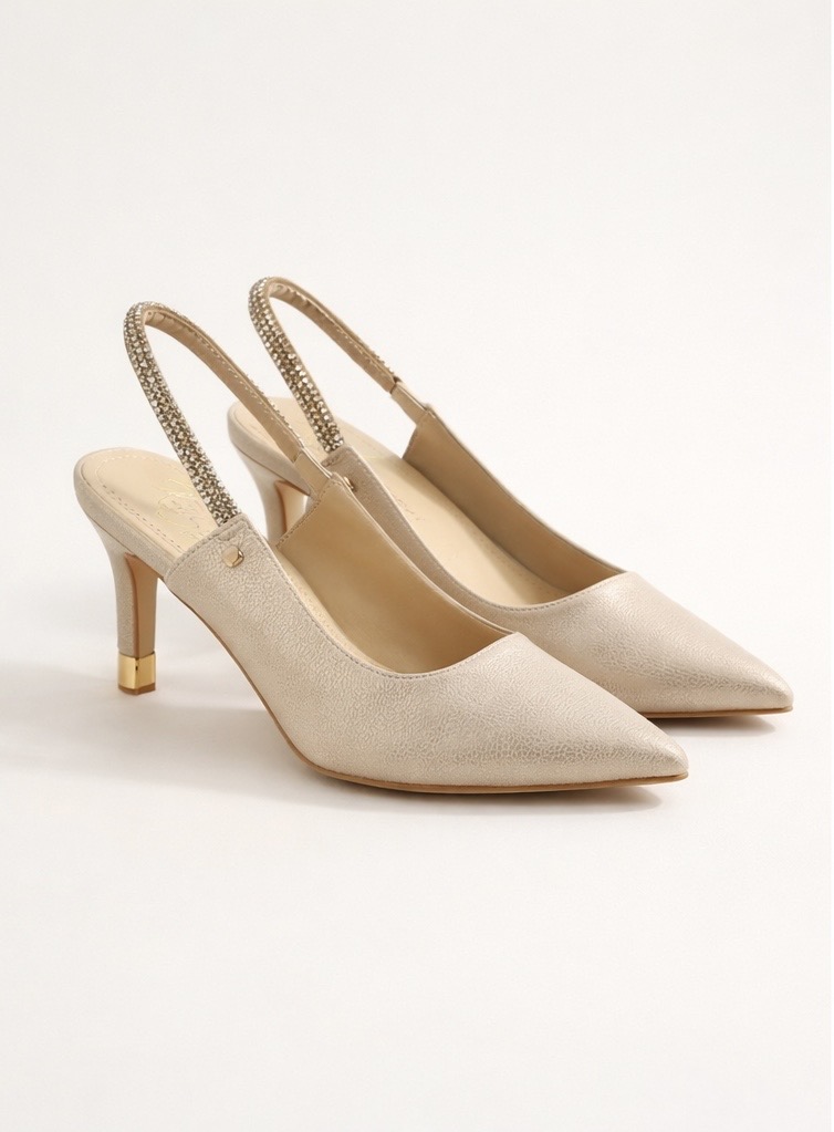 Elegant and effortlessly refined, these champagne slingback heels bring timeless sophistication to any outfit. Crafted in a soft metallic champagne finish, the sleek pointed toe silhouette creates a flattering, feminine shape perfect for both day and evening wear.