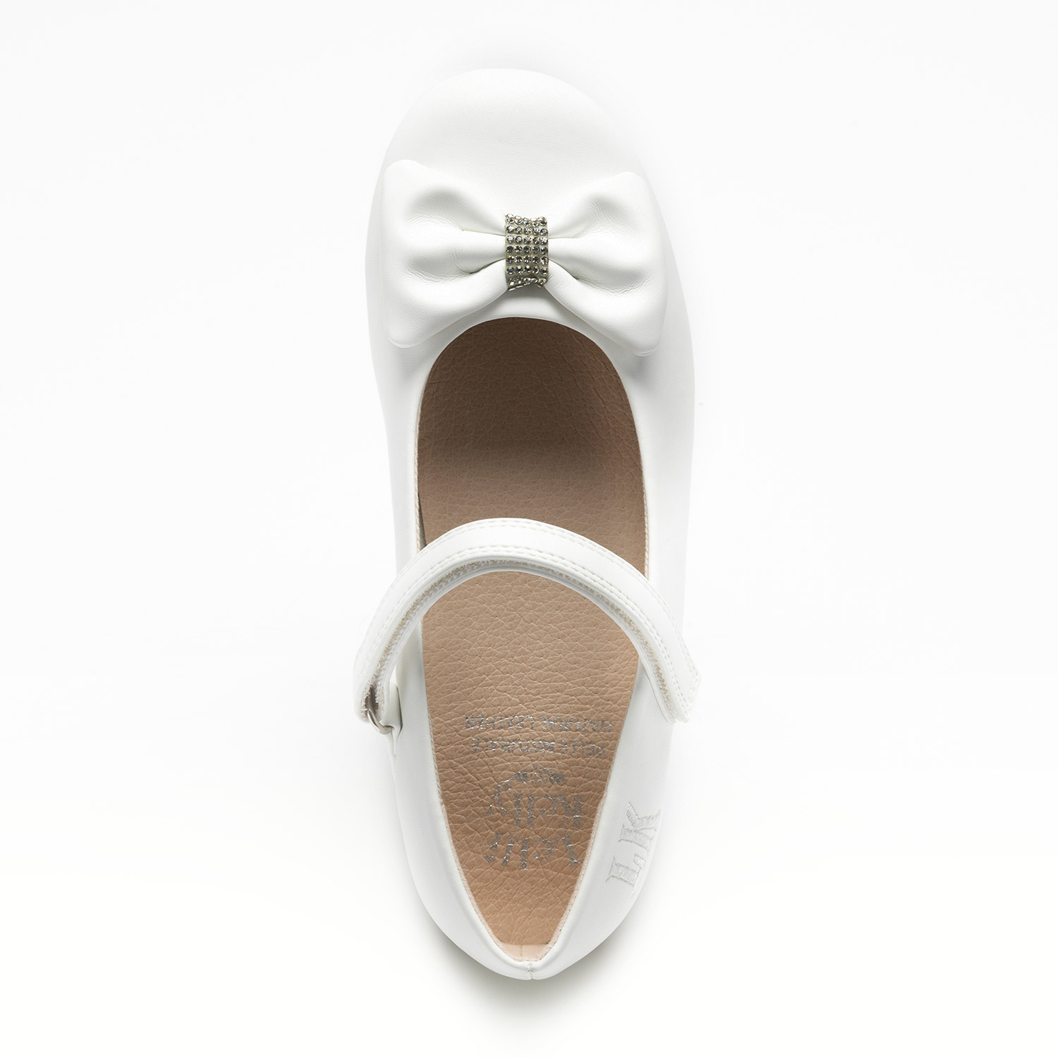 These elegant white ballerina shoes from Lelli Kelly feature a secure strap fastening and charming bow detailing with a sparkling diamanté centre. Designed for both comfort and style, they offer a classic silhouette that’s perfect for special occasions, parties or dressy everyday wear. A timeless girls’ shoe finished with a touch of signature sparkle.