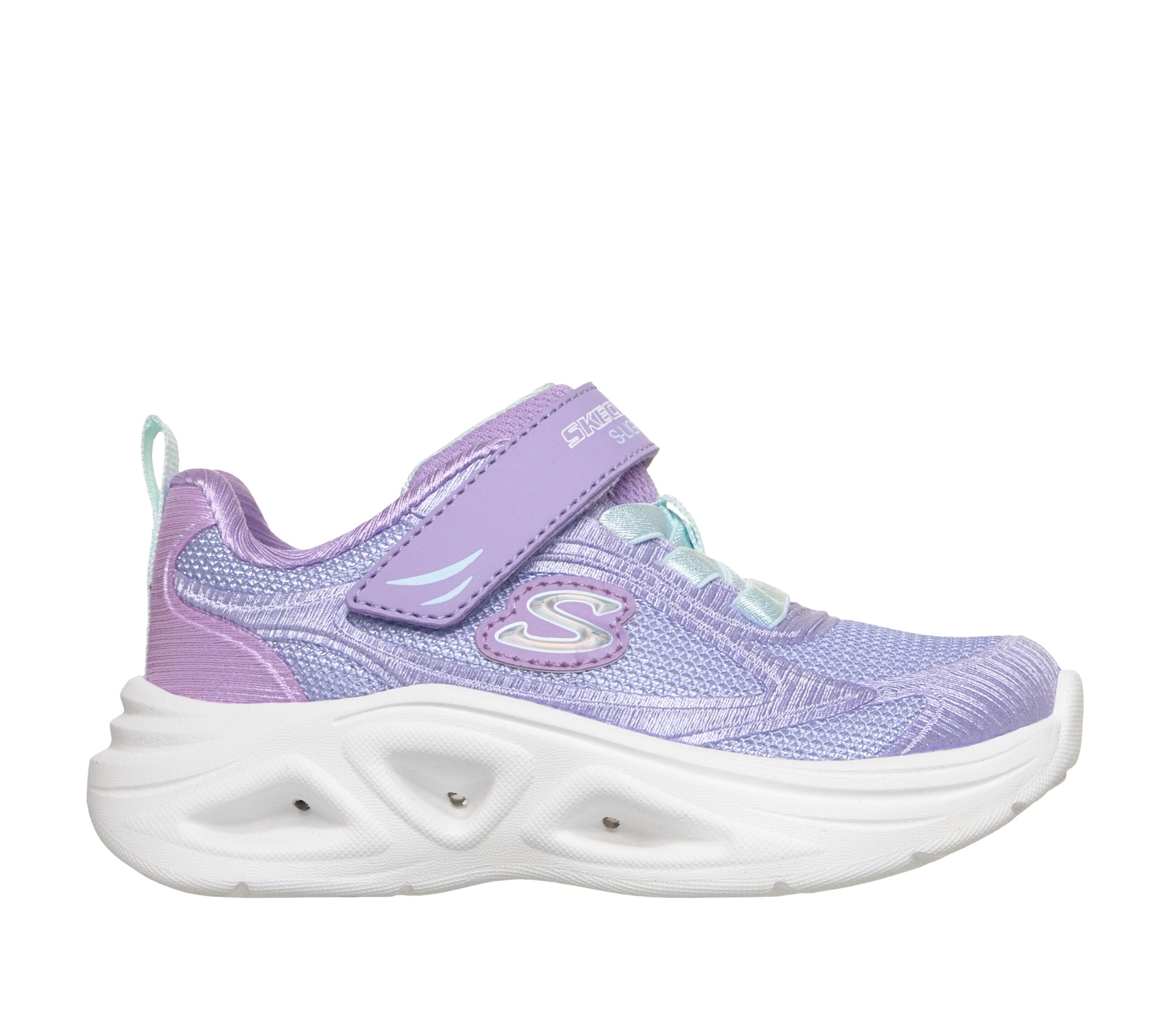 The Skechers adaptive closure system features stretch laces and an adjustable instep strap, making them easy to slip on while ensuring a secure and comfortable fit. A lighted midsole with step-activated lights brightens up every stride, bringing fun and energy to every adventure.