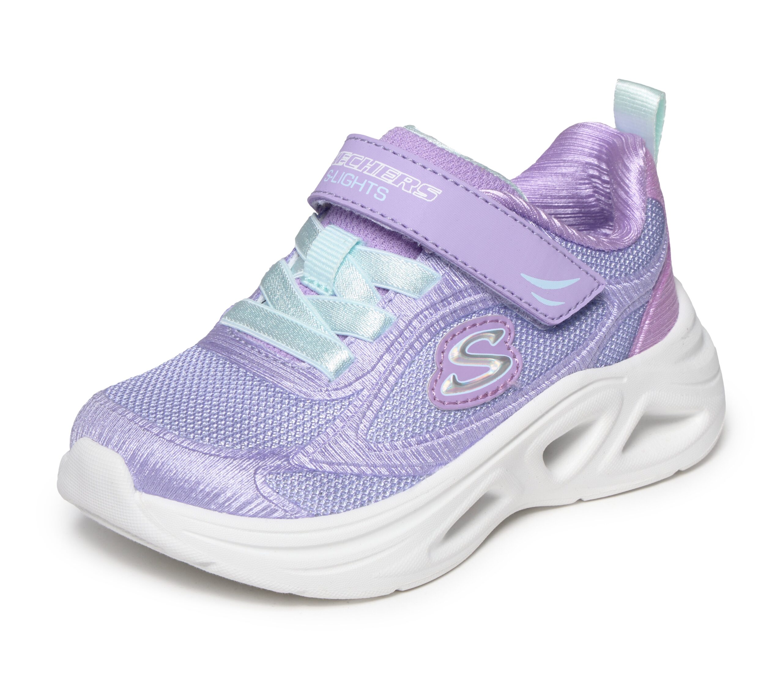 Add colour and excitement to every step with the Skechers S-Lights®: Sola Glow 2.0 – Dazzle Steps. Designed with a vibrant ombre mesh and synthetic upper, these trainers combine sporty style with playful details kids will love.