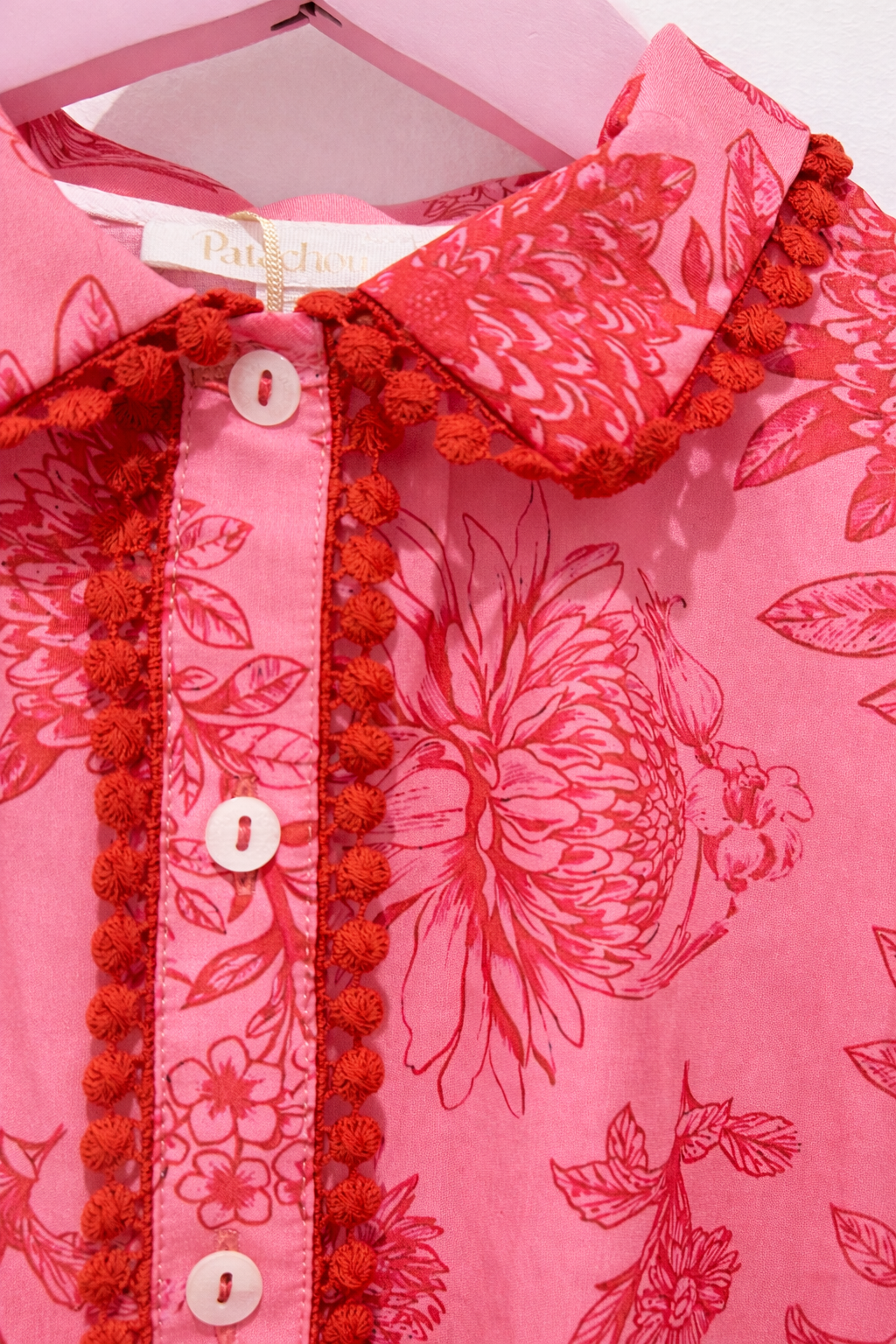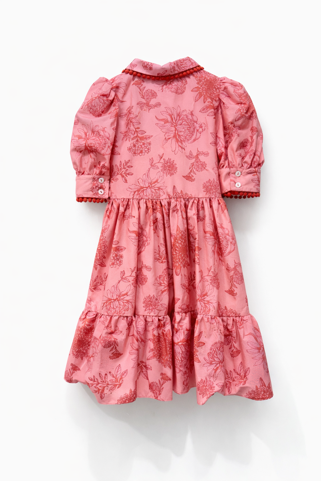 This girls summer dress combines comfort with playful elegance. The breathable cotton fabric keeps it cool and comfortable, while the floral pattern adds a classic, feminine touch. The pompom details along the collar and front placket bring a unique and fun element, making it stand out from standard dresses. Ideal for holidays, parties, or everyday wear, this dress is designed to keep your little one stylish and comfortable throughout the day.
