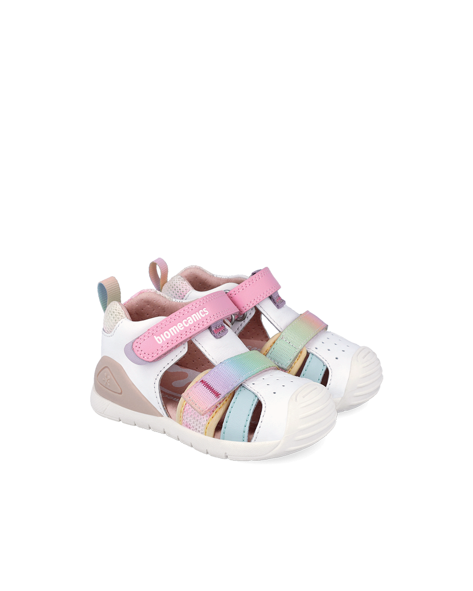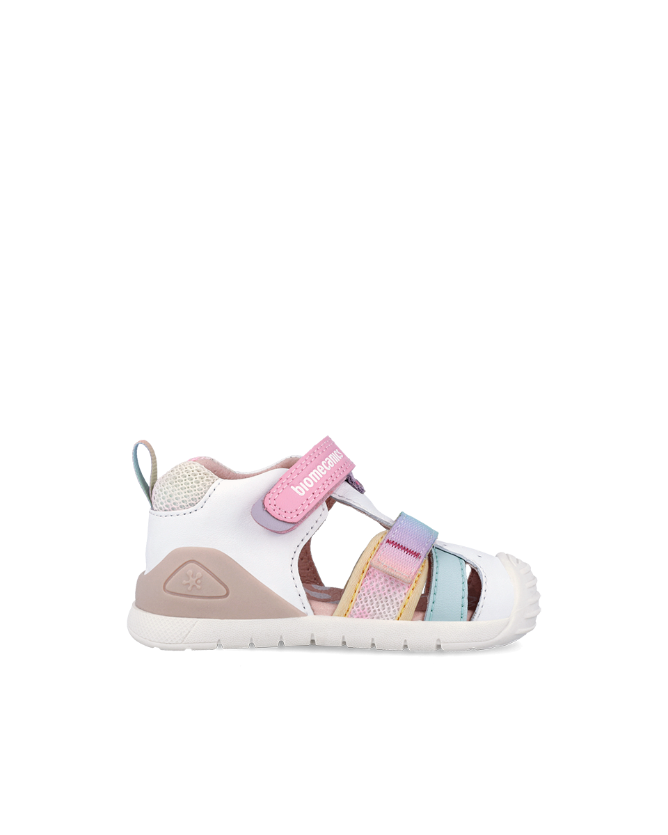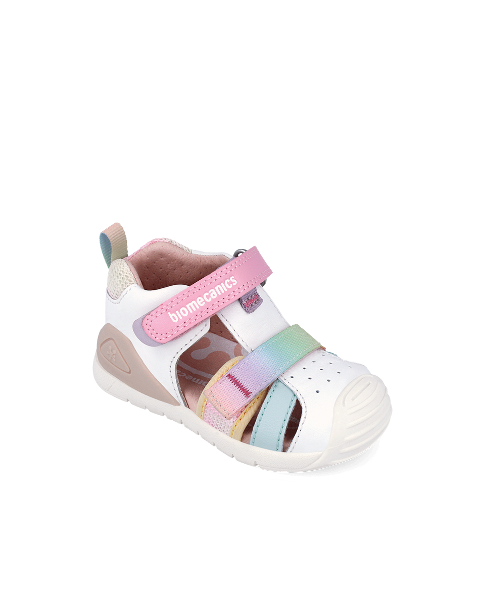 Designed for first walkers, these sandals combine support, protection, and breathability for everyday wear in warmer weather. The closed toe design helps protect little feet, while the open sides allow air to circulate for added comfort.