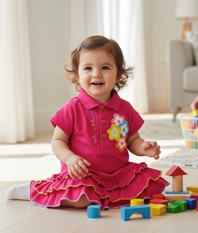 Ideal for playtime, outings or warm-weather days, this dress combines comfort with a bright, cheerful look.