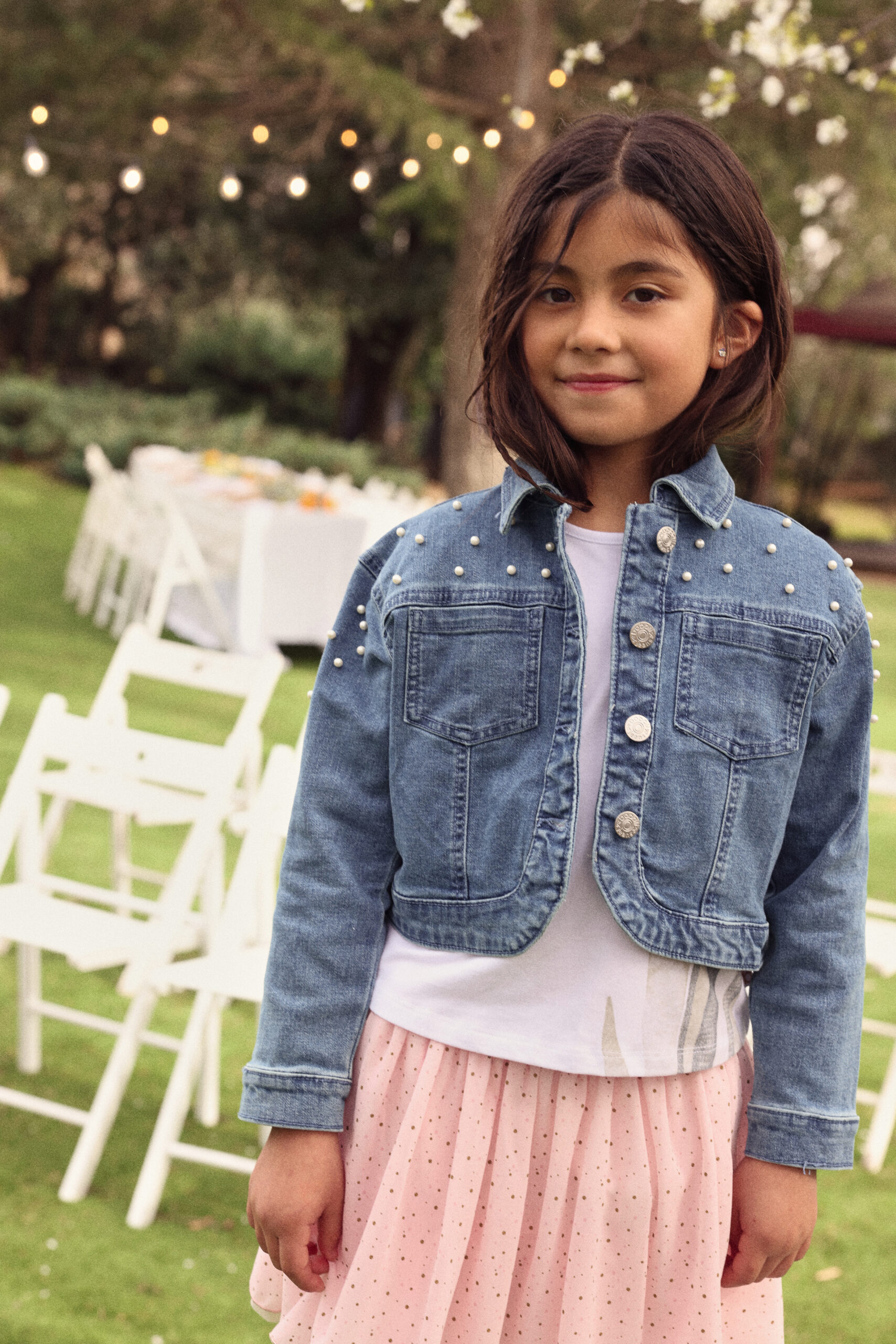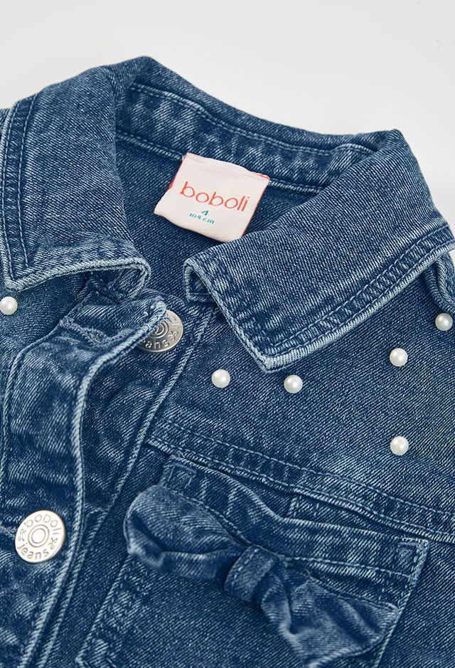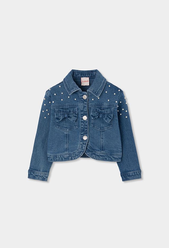Boboli Girls Denim Jacket with Pearl Detail
