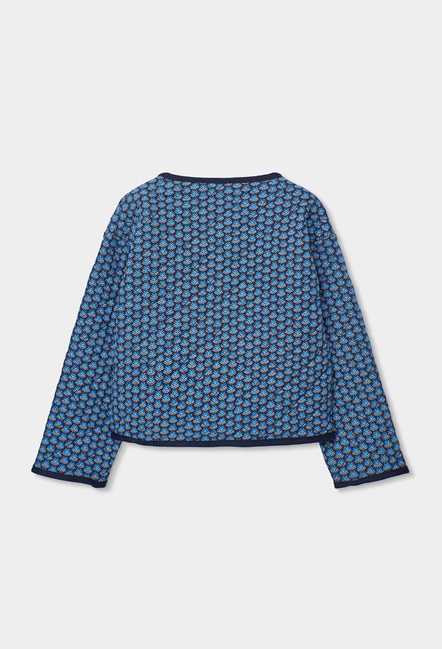Girl’s jacket with blue print for girls made from white cotton knit, offering ideal softness and comfort for delicate skin. Its design includes delicate animal drawings, adding a playful touch. The versatile style of this t-shirt makes it suitable for pairing with different outfits, providing a fresh and casual look.