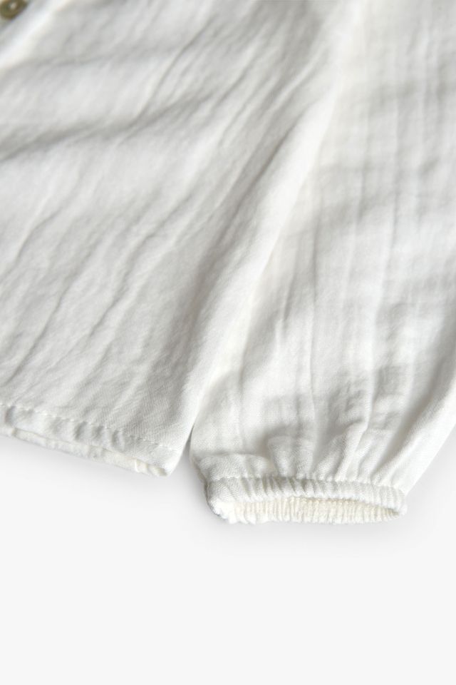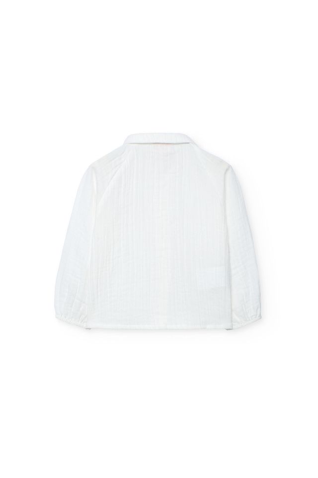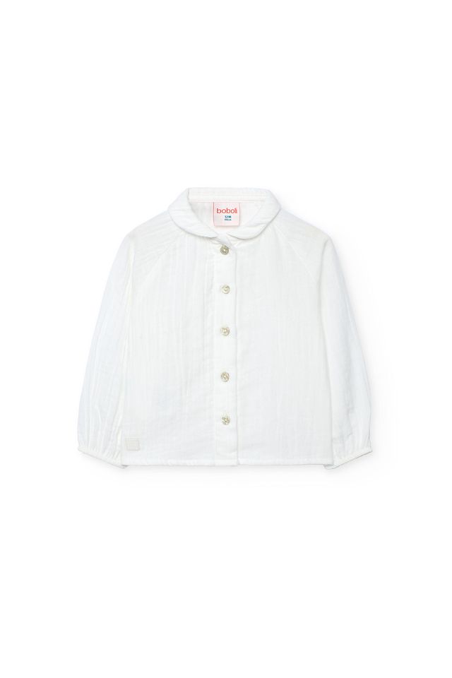 White shirt for girls, made from a lightweight and breathable fabric, ideal for warm seasons and ensuring comfort at all times. The design features a delicate round neckline and small buttons on the front, providing a classic and refined style. This versatile garment can be easily paired with skirts, trousers or shorts, making it an essential basic in any child’s wardrobe.