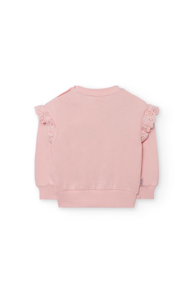 Girls’ pink sweatshirt in fleece with floral print, ideal for autumn and winter. Designed to offer warmth and comfort, it features a round neck and long sleeves for a cosy fit. It is perfect for everyday wear. Easily pairs with trousers or skirts, creating an adorable and practical look.