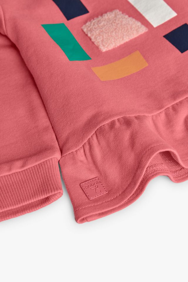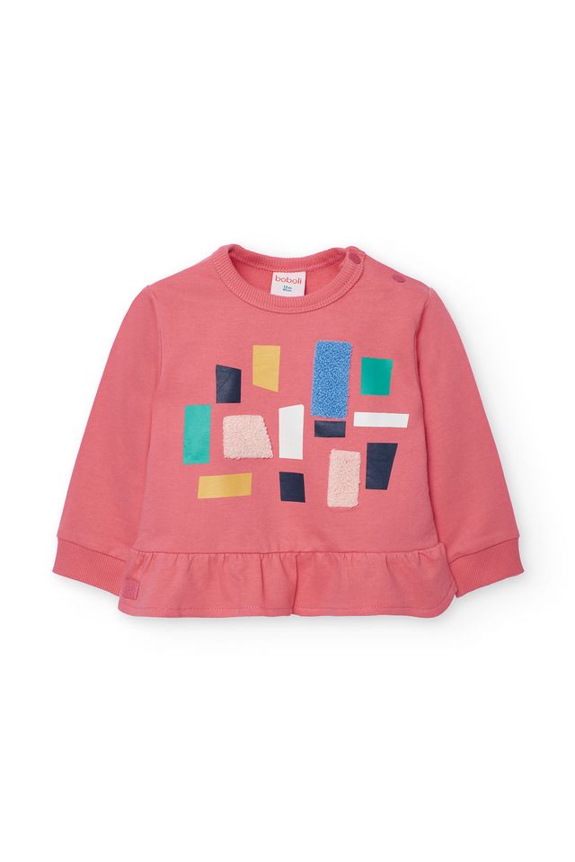 Pink fleece sweatshirt for girls, an essential garment in children’s wardrobes, perfect for cooler days. Made from warm and soft fleece fabric, it offers comfort and warmth, taking care of girls’ delicate skin. Its design and long sleeves allow versatile combinations with trousers or skirts, adapting to different styles and occasions. It grows with your daughter, providing a perfect fit. Suitable for daily use in autumn and winter, it’s a practical and stylish choice.