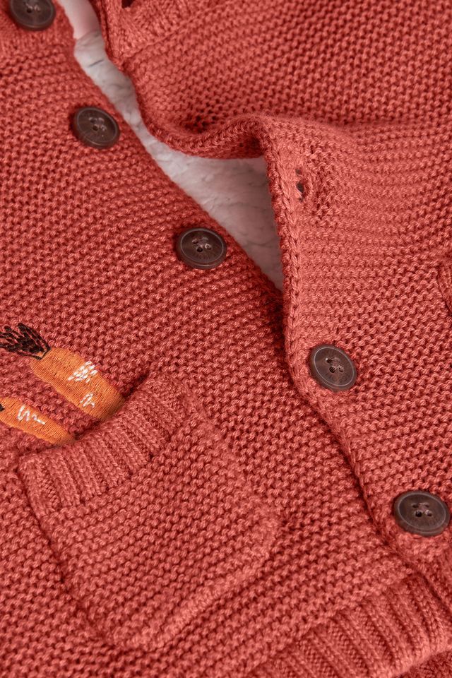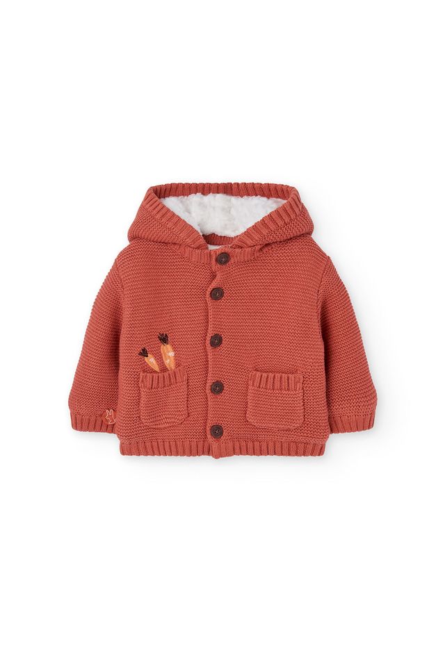 Baby jacket in a vibrant orange colour, adorned with adorable carrot motifs that add a cheerful touch to your little one’s wardrobe. Ideal for the winter season, it is crafted from a soft and warm fabric that provides maximum comfort and warmth. The button closure allows for easy dressing of the baby, simplifying the daily routine for parents. It is a versatile garment perfect for both everyday wear and special occasions. Pair it with neutral or patterned trousers to achieve a harmonious and charming look.