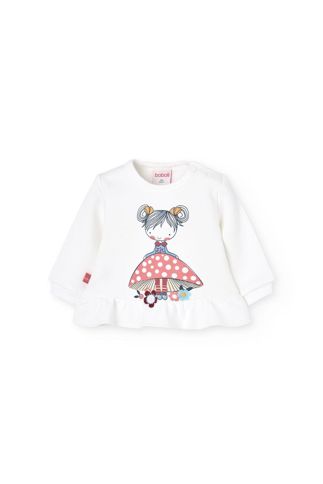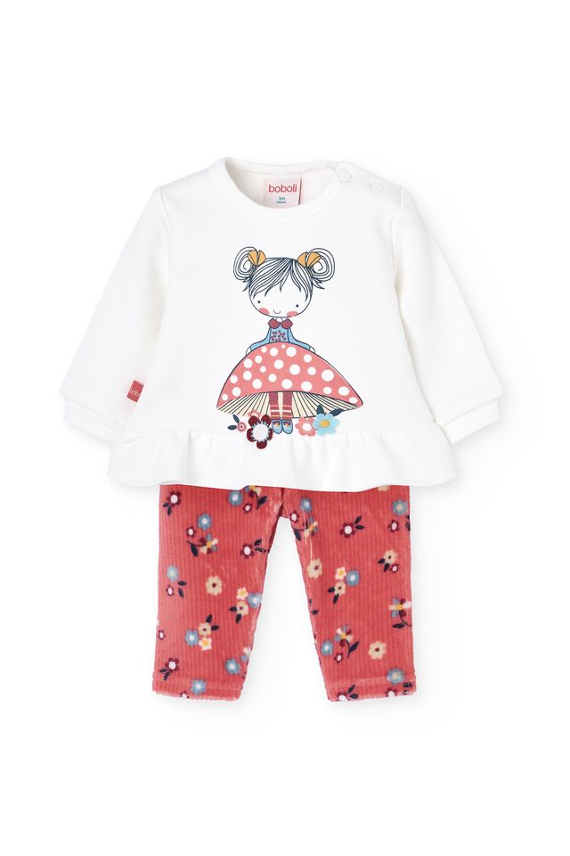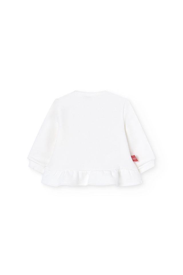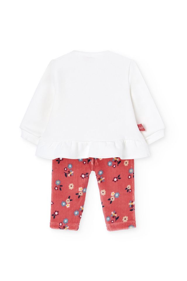 Knit set for baby in elegant white, designed with delicate floral details that bring a fresh and spring-like touch. It offers comfort and softness for girls, ideal for use during the warmer seasons. Made from high-quality materials, it is perfect for special occasions or a stroll in the park. It pairs perfectly with pastel-toned accessories or neutral footwear to create a complete and charming look.