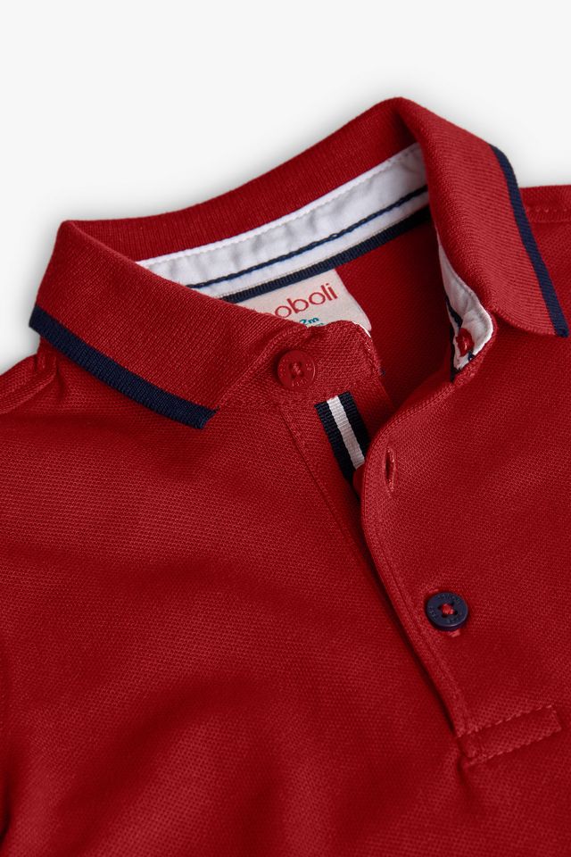Red polo for boys, crafted from piqué fabric that offers softness and breathability, perfect for spring and summer seasons. Elegant maroon hue and classic buttoned collar make it easy to put on and add a distinctive touch to everyday attire. It pairs easily with trousers or shorts for a casual and fashionable look. Ideal for keeping little ones comfortable and stylish on any occasion.
