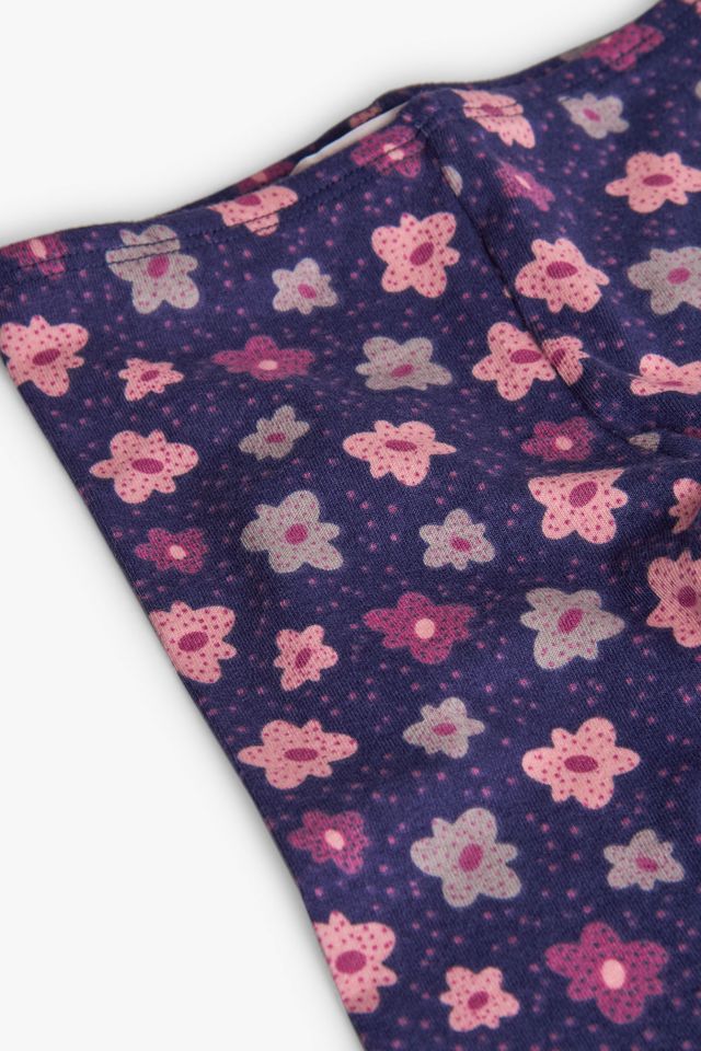 Girls’ leggings made from lilac-coloured knit fabric with a charming floral print, ideal for the autumn and winter seasons. Crafted from stretchy material, they ensure comfort and freedom of movement for the little ones. They are perfect for pairing with plain t-shirts and sweaters, offering a cheerful and modern outfit for any occasion.