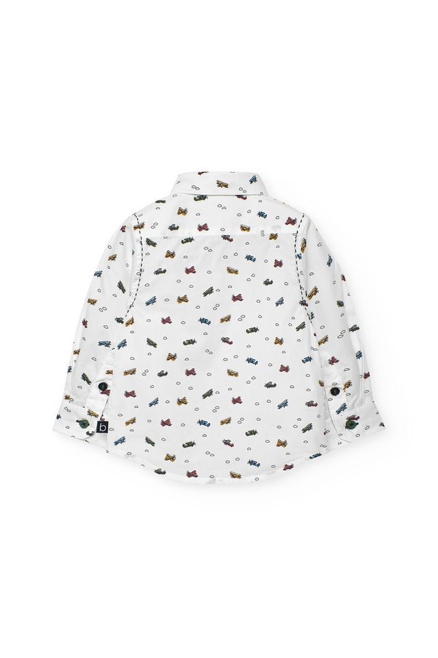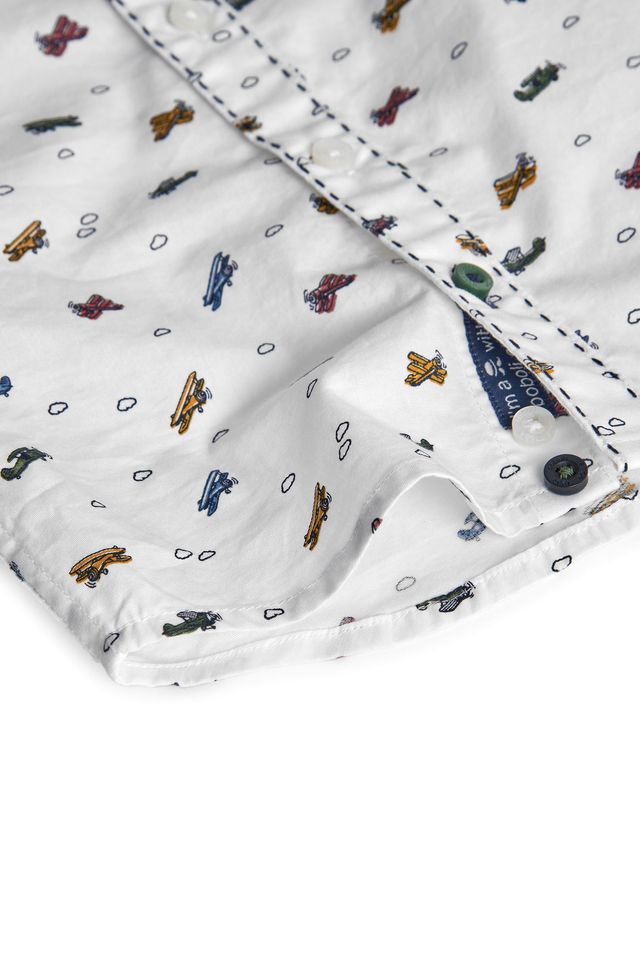 Printed poplin shirt for boys, made from a soft and breathable fabric that provides comfort and style all year round. It ensures a perfect fit for the little ones. Ideal to pair with trousers or dungarees, this shirt is a versatile garment suitable for both casual occasions and special events. The colourful and modern print adds a fun touch to your child’s wardrobe.