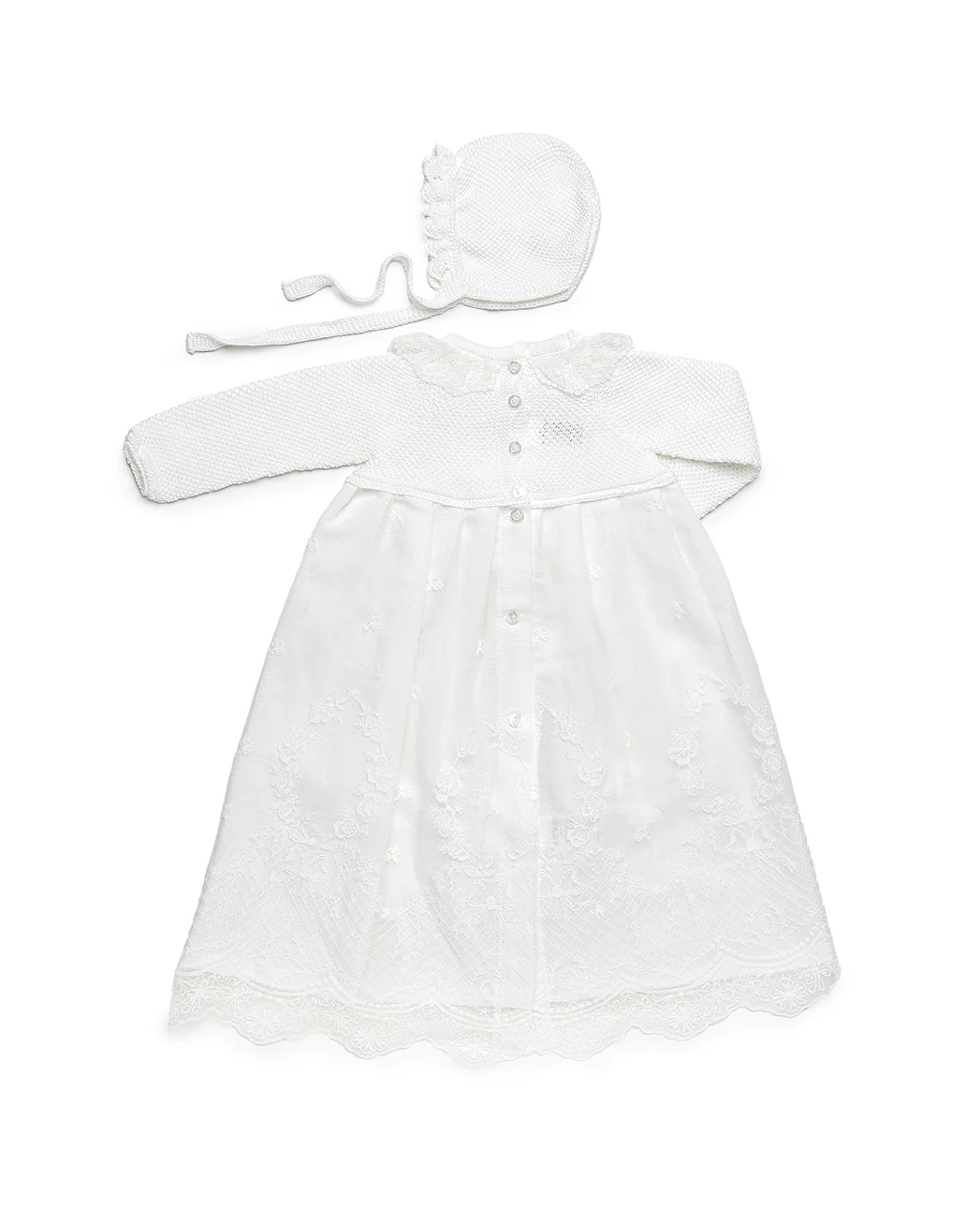 Delicate and timeless, this baby ceremony dress is designed for special occasions such as baptisms and celebrations. The soft knitted bodice offers comfort against delicate skin, while the lace skirt adds an elegant, traditional finish.