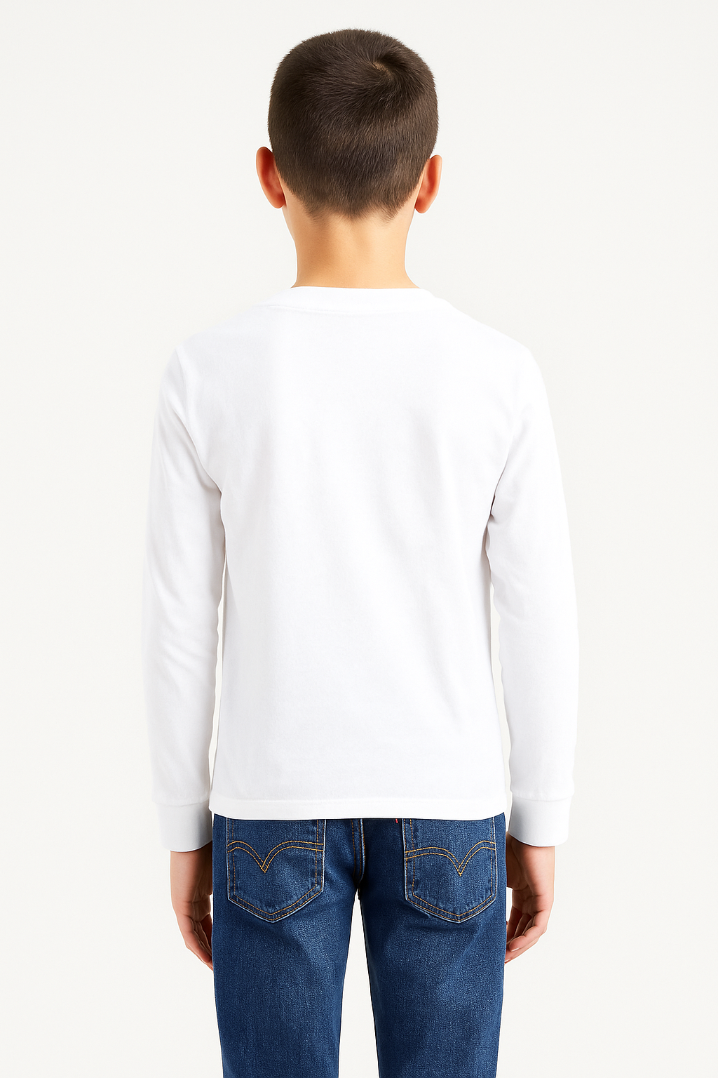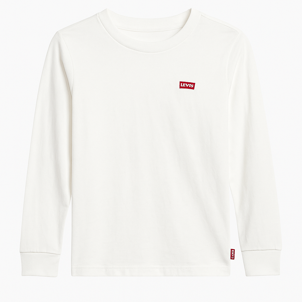 This Levi’s long sleeve T-shirt is a wardrobe essential for boys. Made from soft, breathable cotton, it offers all-day comfort and a clean, classic look. The crisp white fabric is detailed with the iconic red Levi’s logo on the chest for a touch of signature style. Perfect for layering or wearing on its own, this top pairs easily with jeans, joggers, or shorts for everyday wear.