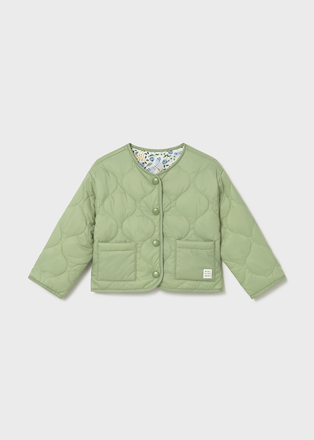 This baby girl reversible jacket from Mayoral offers two looks in one: a fresh green side and a pretty floral-print reverse. Lightweight and padded for gentle warmth, it’s perfect for changeable weather and easy layering. Designed with a soft feel and practical details, it pairs effortlessly with everyday outfits for playtime or nursery days.