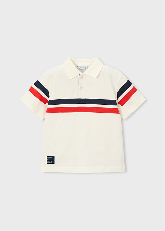 Boys’ White Polo Shirt with Red and Navy Stripe by Mayoral