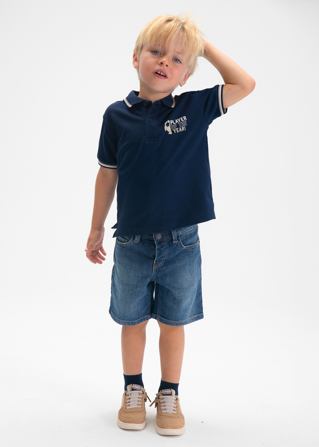 Boys’ Navy Polo Shirt with Football Theme by Mayoral