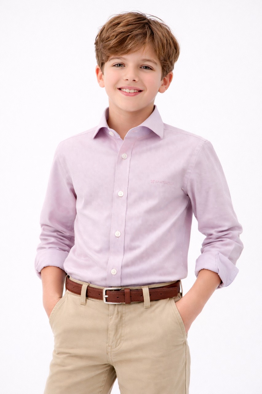 This boys’ dress shirt from Spagnolo features a refined light pink design with long sleeves and a classic pointed collar. Crafted from high-quality fabric, it offers both comfort and elegance, making it an ideal choice for formal occasions. The discreet chest pocket adds a touch of sophistication, reflecting the brand’s commitment to timeless style.