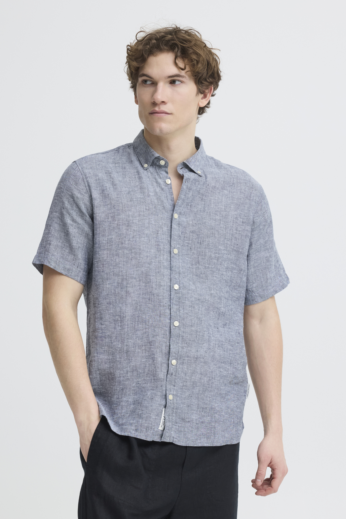 Cut in a relaxed fit, it offers a lightweight, breathable feel that keeps you comfortable in warmer temperatures. The natural linen texture adds subtle depth while maintaining a clean, refined look.