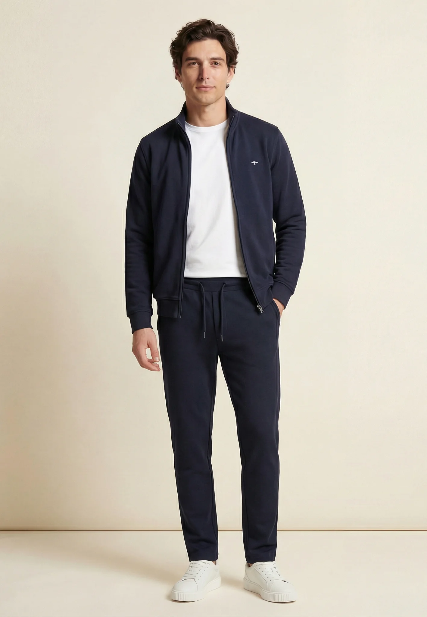 This sweat jacket made of pure cotton impresses with its high wearing comfort and a timeless, sporty, clean design. The soft quality ensures a pleasant feeling on the skin, while the full-length zipper and stand-up collar add functional accents. Side pockets and the discreet logo embroidery on the chest round off the look harmoniously. Can be combined in a variety of ways – ideal for relaxed leisure outfits or as a casual companion in everyday life.