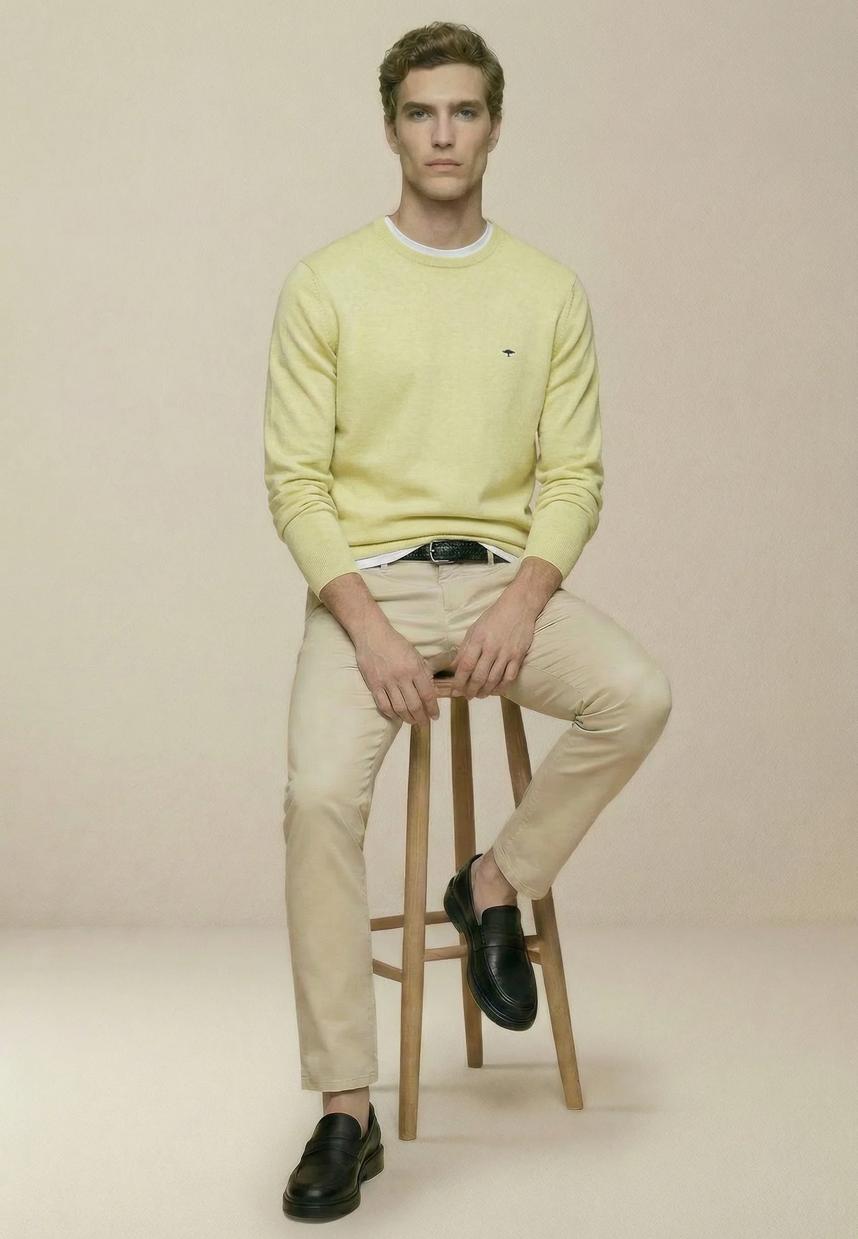 The crew neck, together with the finely knitted material, ensures a comfortable fit and pleasant lightness. The plain-colored design can be combined in many ways – whether worn with a casual shirt, relaxed over your T-shirt or in a classic way. A subtle logo detail on the chest gives the sweater a typical brand accent and underlines its timeless appeal. Ideal for your well-groomed casual style with long-lasting requirements.