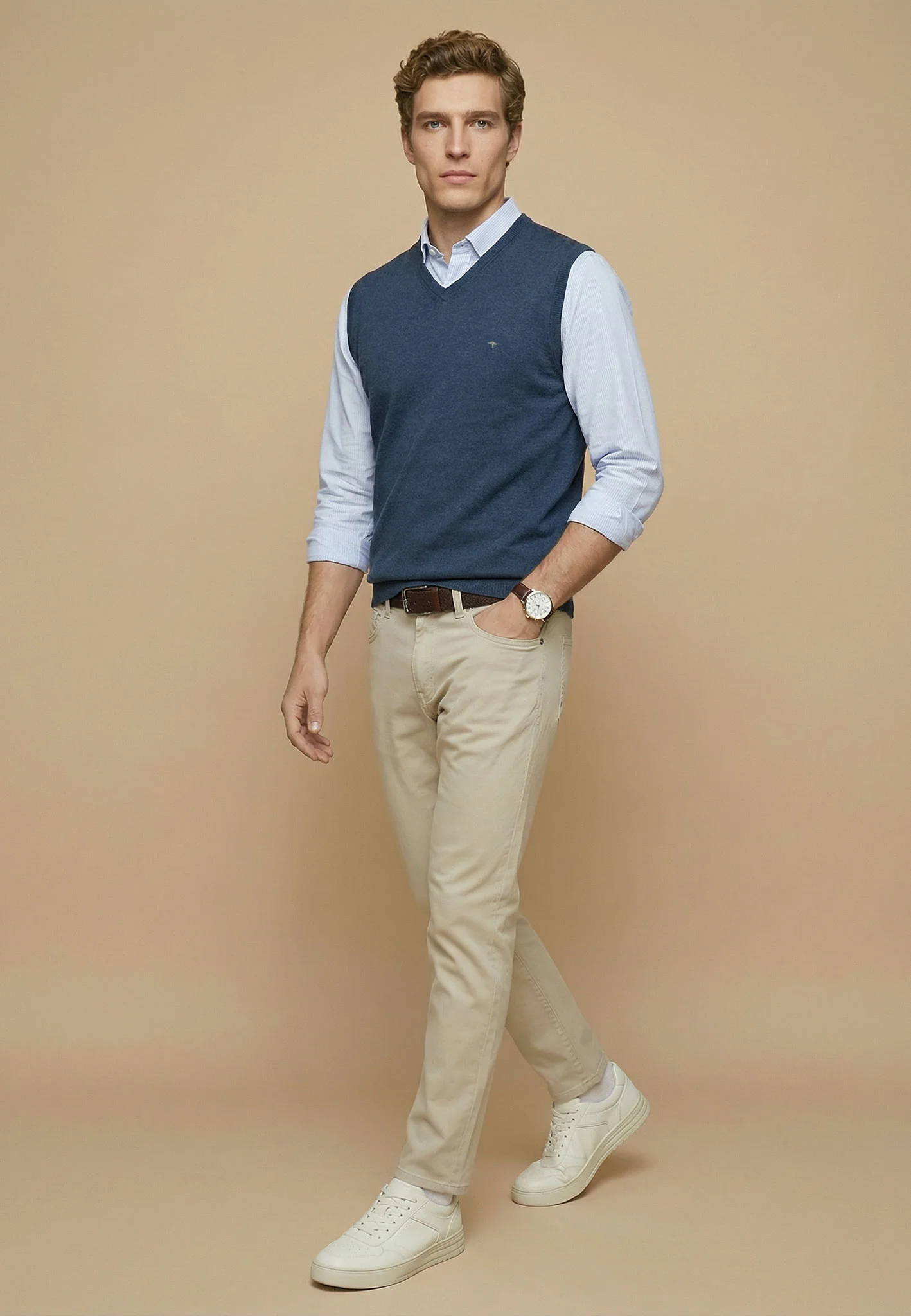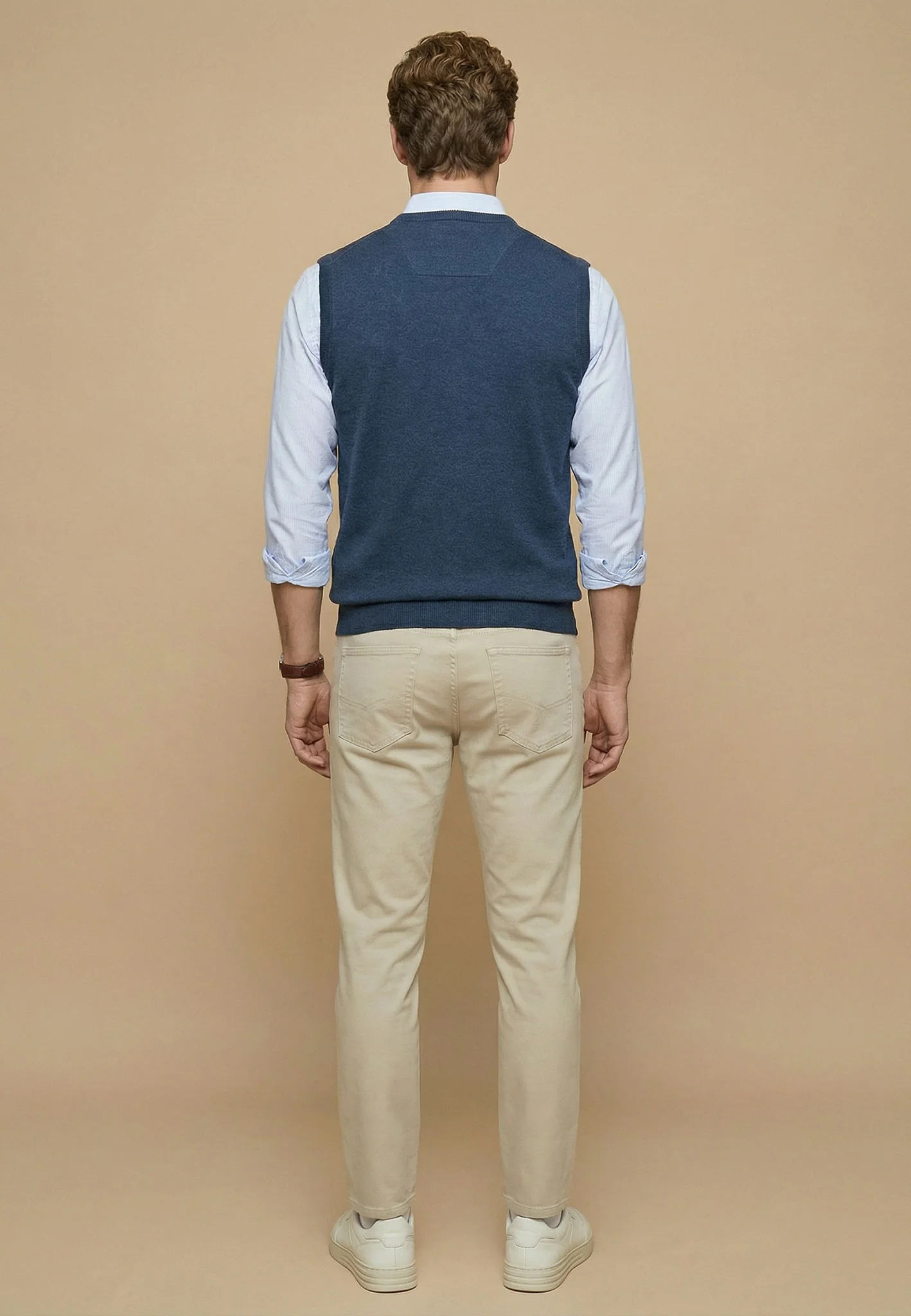 This classic V-neck slipover is a refined layering piece, ideal for a smart, well-groomed look. Crafted from pure cotton, it offers a soft feel against the skin along with natural breathability and reliable shape retention. The fine knit construction gives it a clean, understated finish that layers effortlessly over a shirt or pairs casually with a T-shirt. A subtle logo detail on the chest completes the design with a signature touch.