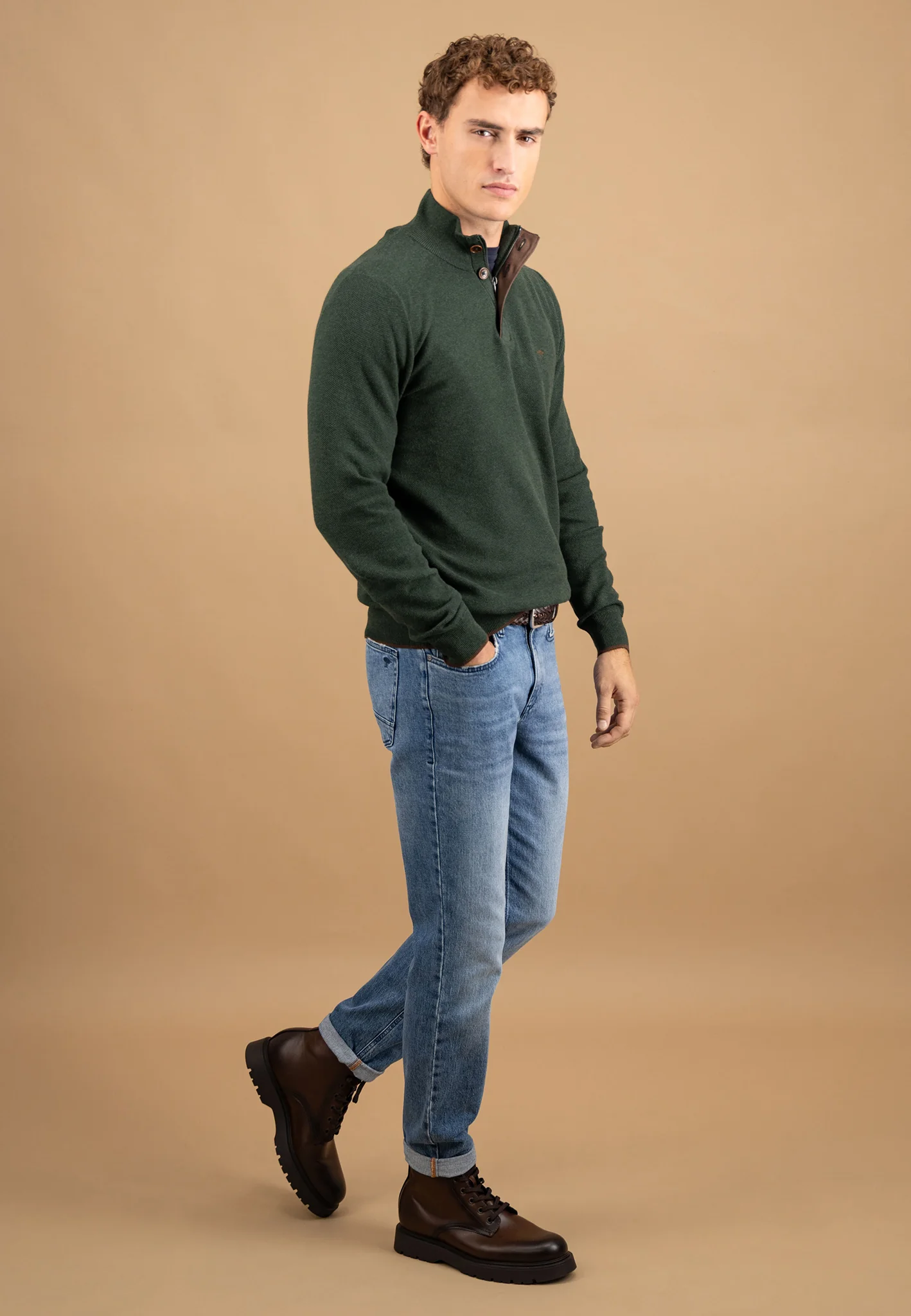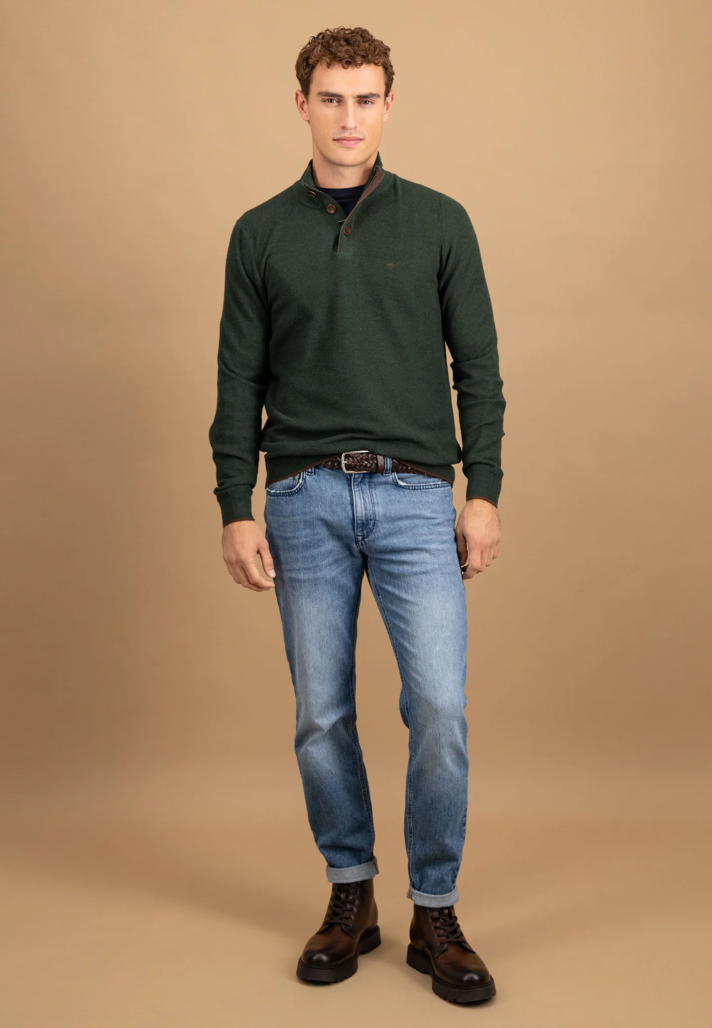 Featuring a distinctive textured knit and signature button placket, this jumper stands out with its sporty yet refined look. The ribbed stand-up collar can be worn open or fastened for different styling options, while ribbed cuffs and hem ensure a comfortable fit. Finished with the subtle embroidered Fynch-Hatton logo on the chest, it’s a polished knit that pairs effortlessly with jeans, chinos, or layered under a jacket.