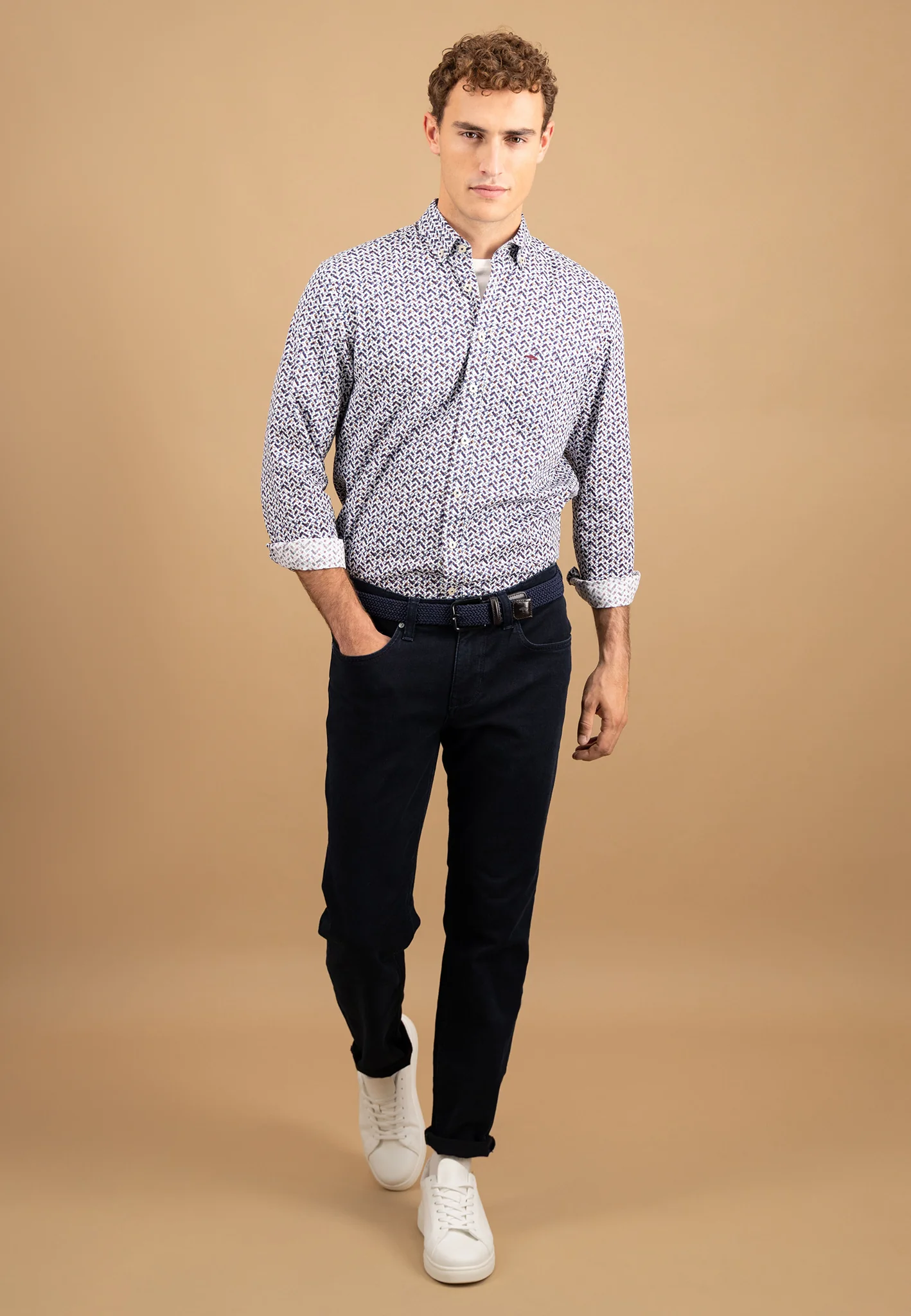 This shirt brings fresh momentum to your wardrobe with its fine, graphic all-over print. Made of pure cotton, it offers a comfortable feel and natural breathability – ideal for everyday wear and special occasions.