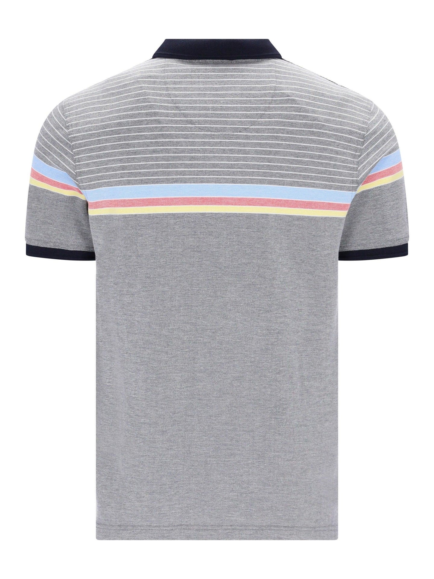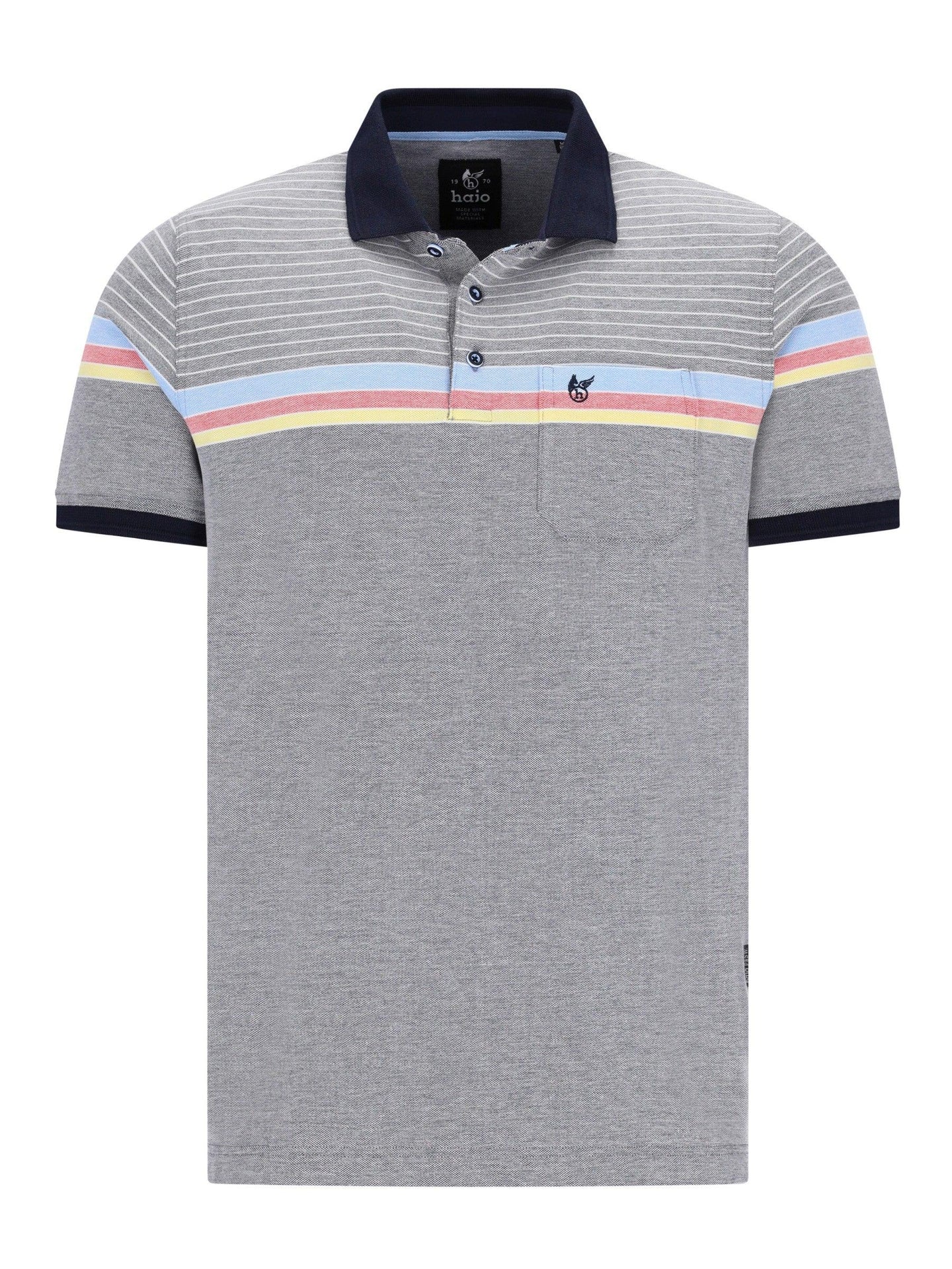 The dry-resistant and easy-care fabric ensures lasting comfort with minimal maintenance, while the flat knit collar and button placket deliver a clean, classic look. A yarn-dyed stripe detail across the upper chest adds subtle structure, complemented by an all-over jacquard texture for a refined finish.