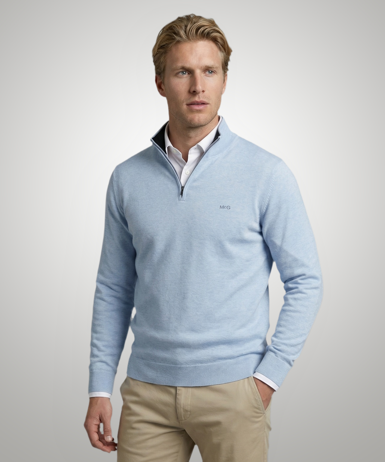 This mens cotton cashmere half zip jumper combines breathable cotton with the luxurious softness of cashmere, creating a lightweight yet refined knit suitable for year-round wear. The half zip neckline adds a modern, versatile touch, allowing it to be styled open for a relaxed look or zipped up for a more polished finish. Ribbed trims ensure a neat fit, while the regular cut provides comfort without compromising on style. Perfect for layering over shirts or wearing on its own, this jumper is ideal for both casual and smart-casual outfits.