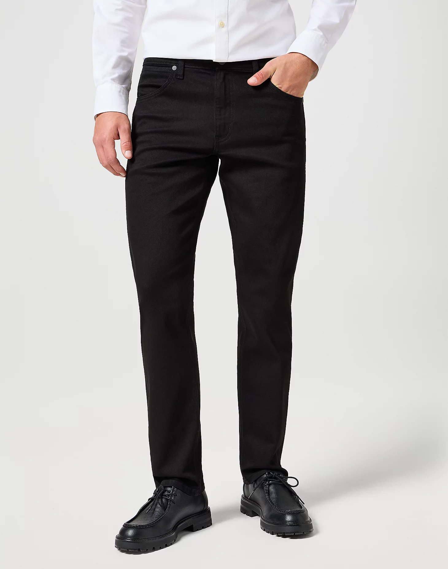 Designed with a modern straight leg and a regular fit through the thigh, these original Greensboro Jeans are the perfect everyday jean, offering the perfect blend of comfort and style. They’re crafted from durable cotton with a bit of stretch for extra flexibility as you move through your day. Features include a zip fly, button opening, 7 belt loops and a leather Wrangler patch on the back pocket, giving these easy-wearing jeans timeless appeal. Low-rise waist with a straight leg and a regular-fit through the thigh.