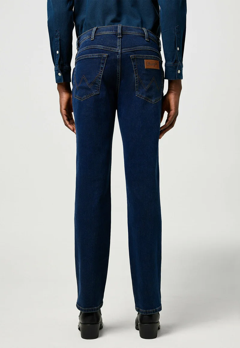 With a straight leg, regular thigh and mid-rise waist that sits naturally, these jeans deliver a versatile everyday fit. The durable denim is engineered with 5-pocket styling, 7 belt loops, signature ‘W’ stitching, and the iconic brown leather Wrangler patch for authentic Western heritage.