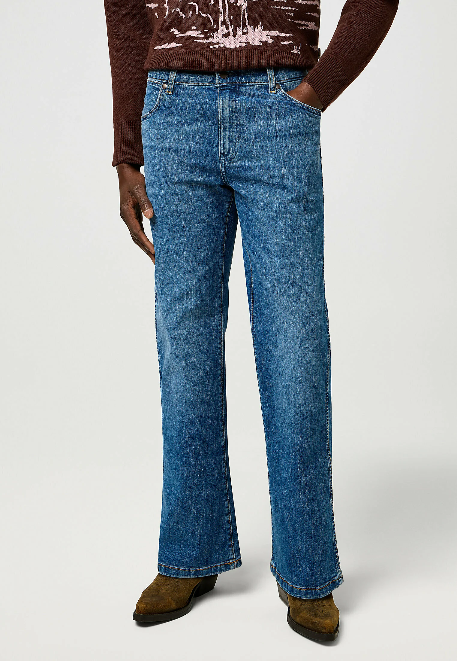 With a mid-rise waist, loose leg and subtle bootcut opening, these jeans are designed to fit easily over your favourite boots without overwhelming your look. Signature Wrangler details—7 belt loops, ‘W’ stitching and the iconic brown leather back patch—complete the authentic denim design.