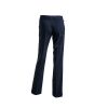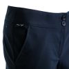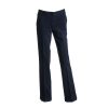 The quality of the fabric composition is 62% Polyester, 33% Viscose, and 5% Lycra. Features include a flat front, hipster waist, stretch Lycra, zip and button closing, and side pockets.