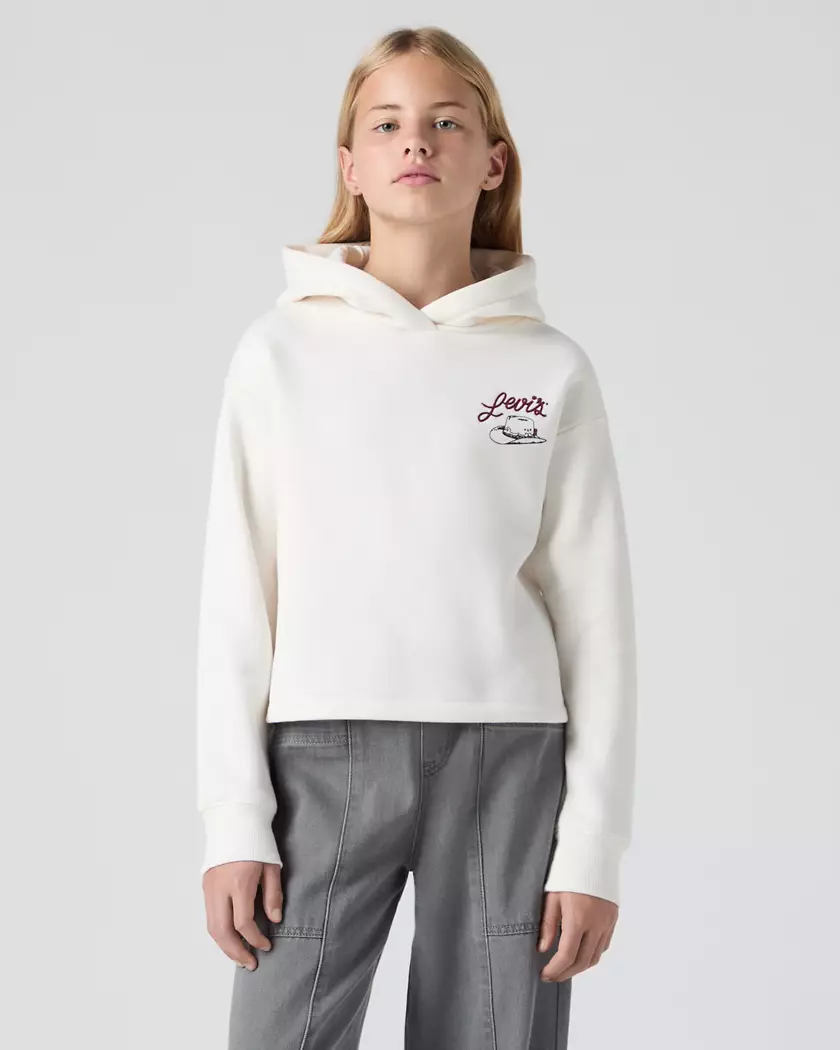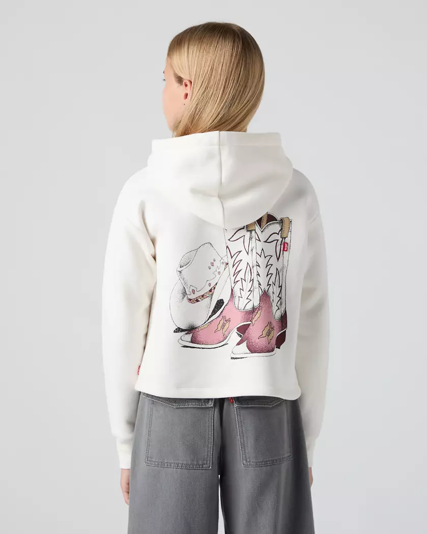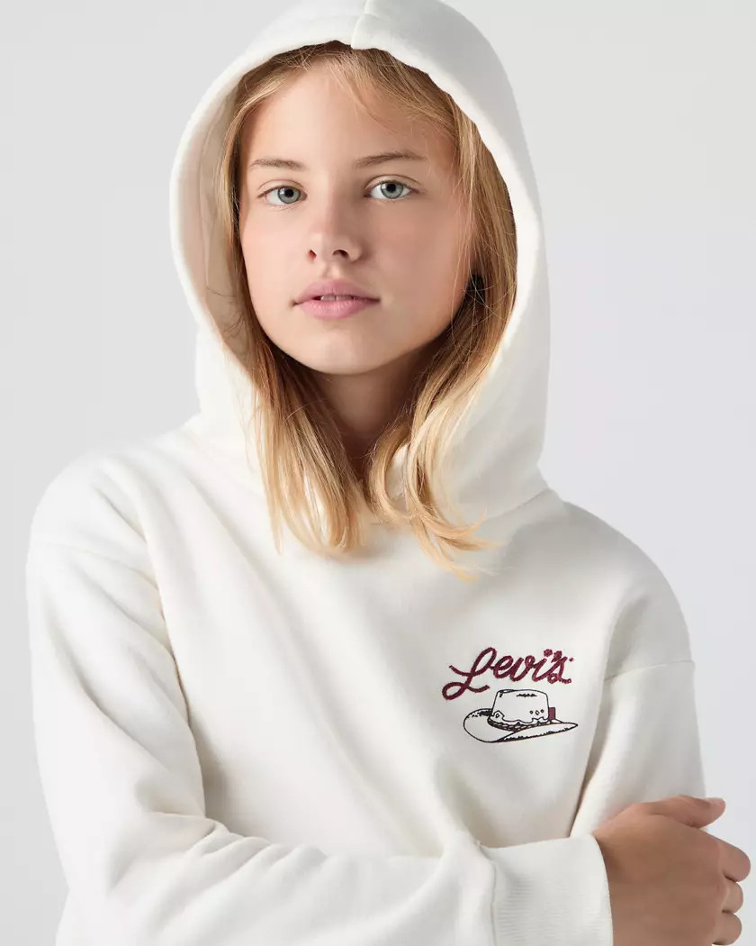 This lovely Levi’s® hoodie combines trendy design with casual charm, making it an essential piece for any child’s wardrobe. Crafted from high-quality fleece for a soft and cosy feel, it offers lasting comfort and warmth on cooler days. Designed with a relaxed, boxy cut for a modern silhouette, this pullover features a playful graphic Levi’s® boots print on the back, adding a touch of fun to an everyday classic. Perfect for layering over tees or pairing with jeans for an effortlessly stylish look.