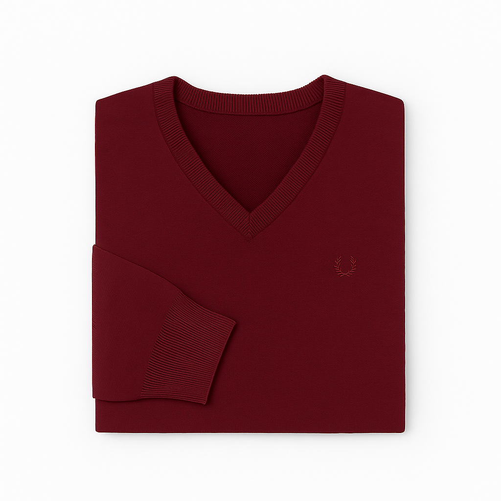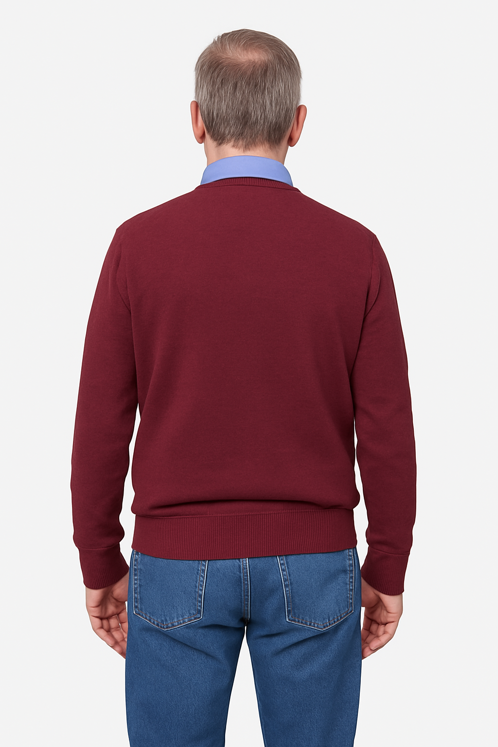 This cosy sweater features a rich burgundy tone and a crisp V-neck style by Zazzi. Crafted from soft, high-quality knit fabric, it delivers comfort and versatility. The ribbed collar, cuffs and hem give it a neat finish, while the subtle logo embroidery keeps things refined. Wear it over a shirt for smart-casual days or on its own for a relaxed look.