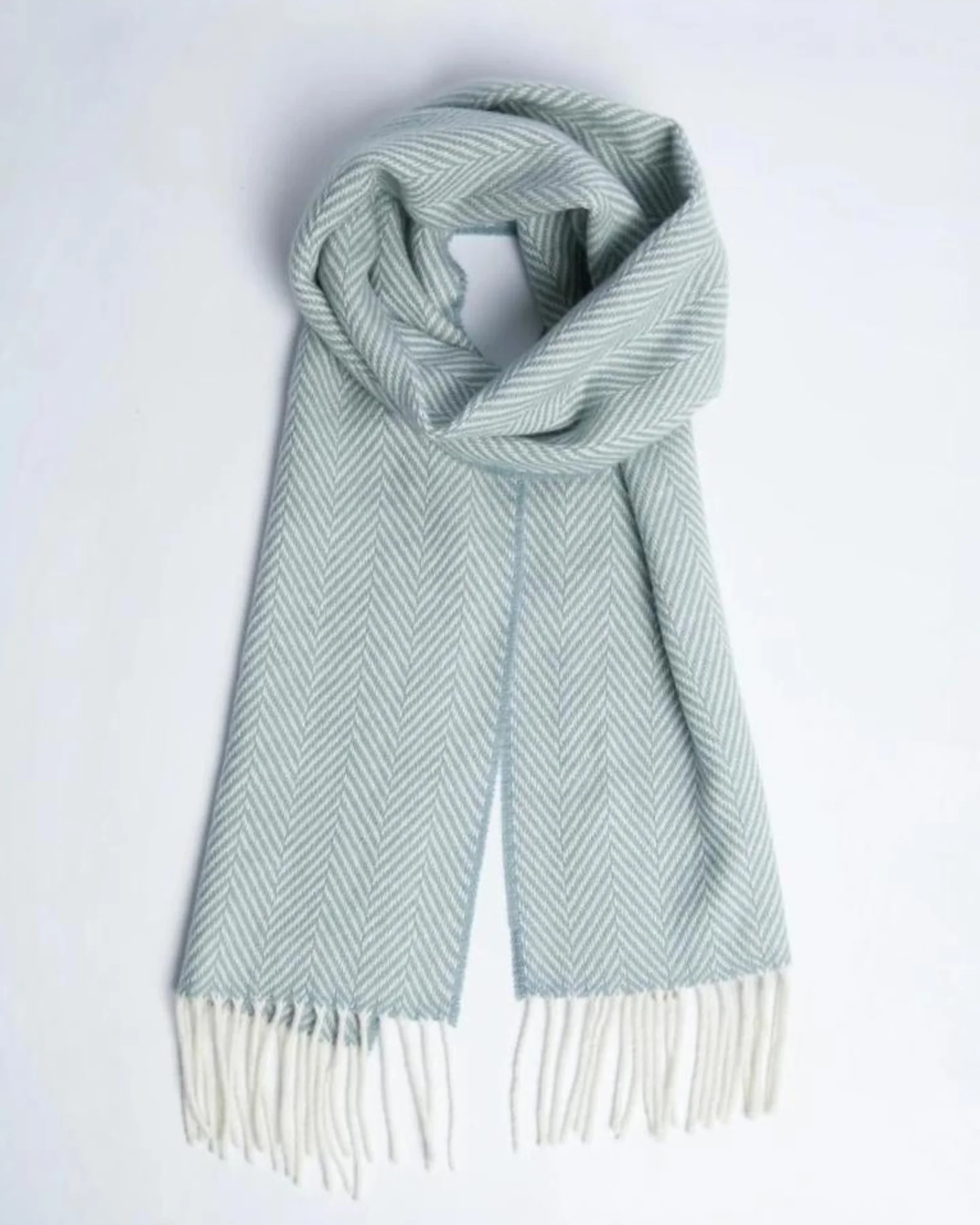 The classic herringbone pattern in sage and cream adds a subtle, refined look. Easy to style, it’s a timeless accessory that works well with both casual and more formal outfits.