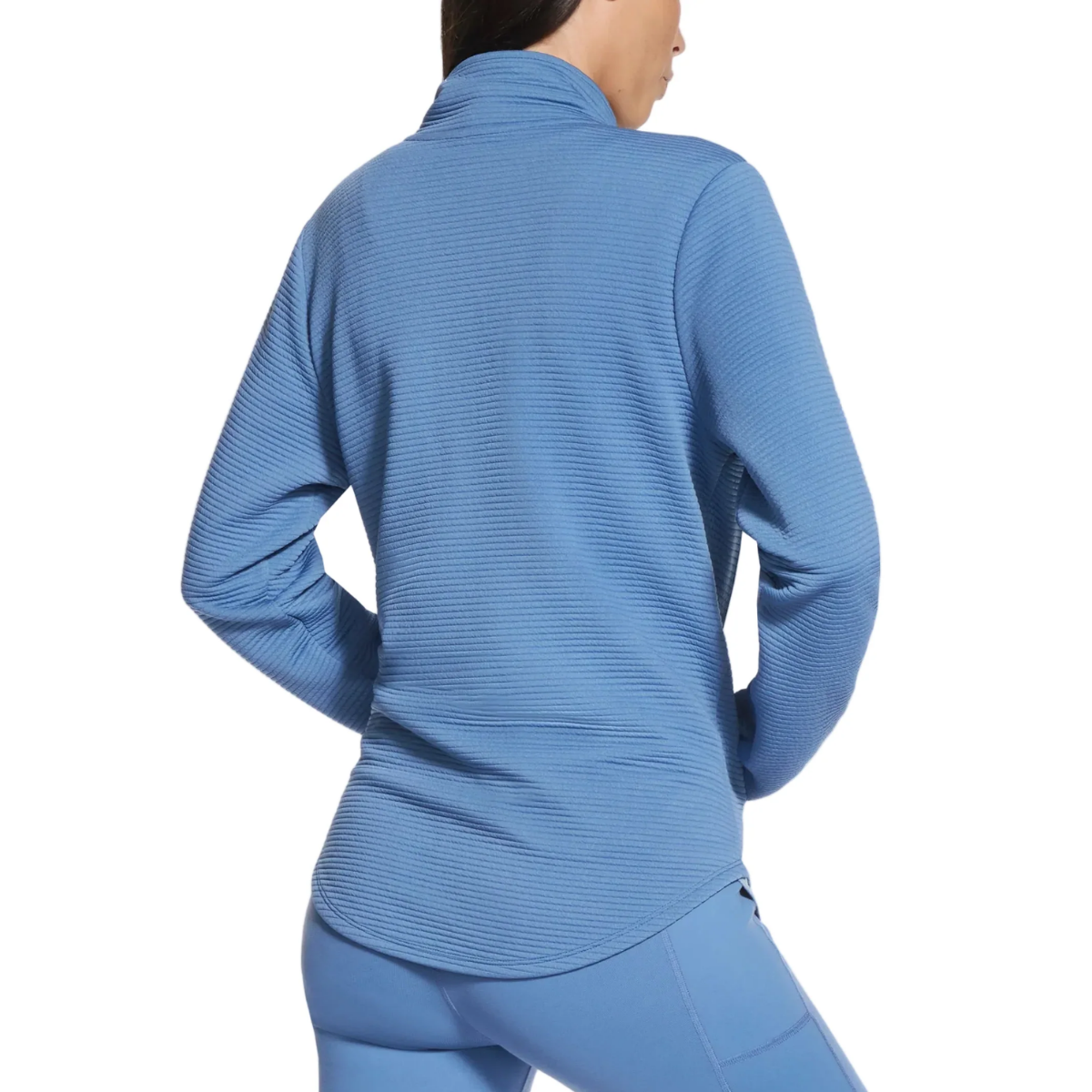 The sporty mock-neck design and full zip front with branded pull provide easy layering, while the flattering scooped hem creates a modern, feminine silhouette. Two welt hand pockets add practical storage for everyday essentials.
